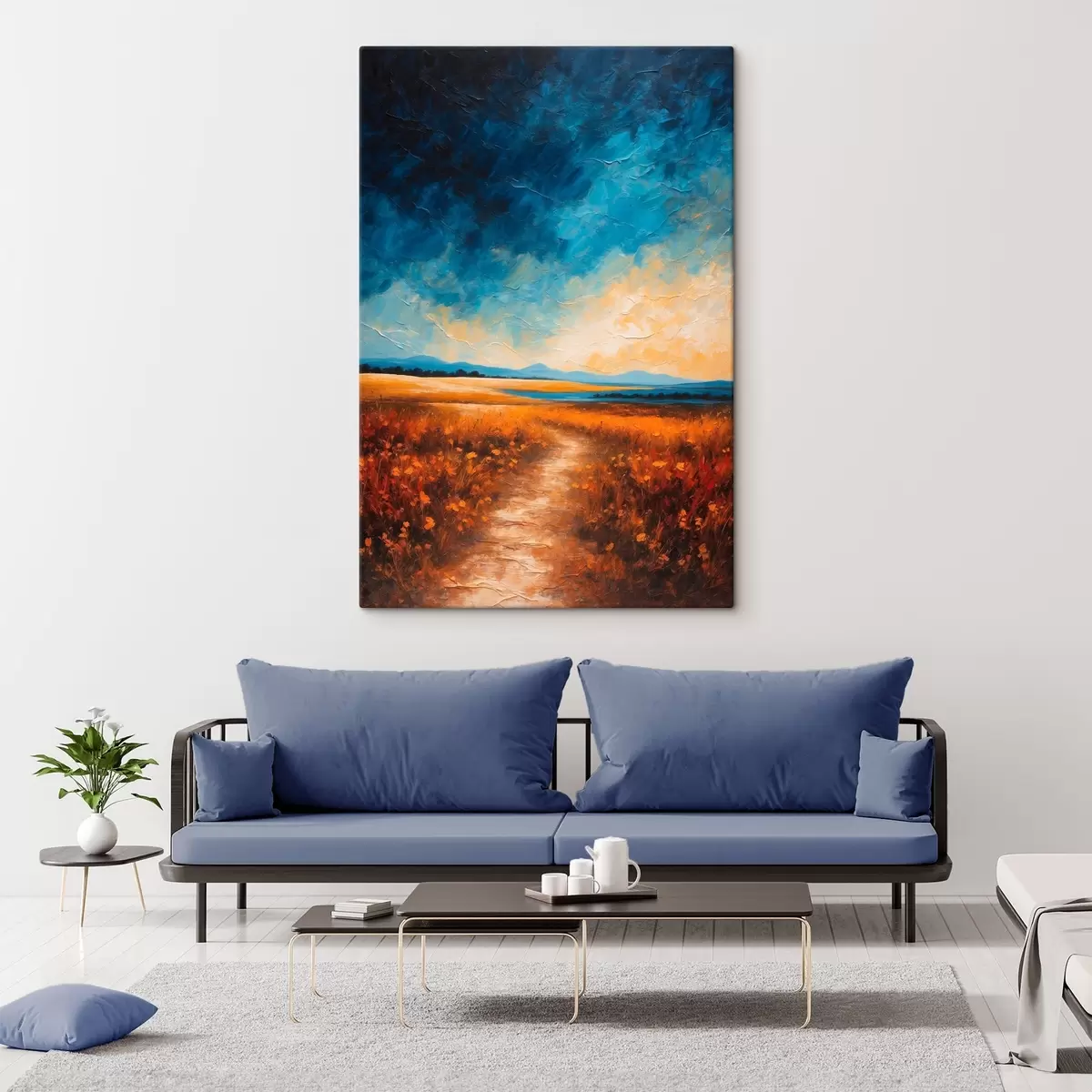 Fototapete Blumenfeld am Abend im Stil der Acrylmalerei s44440