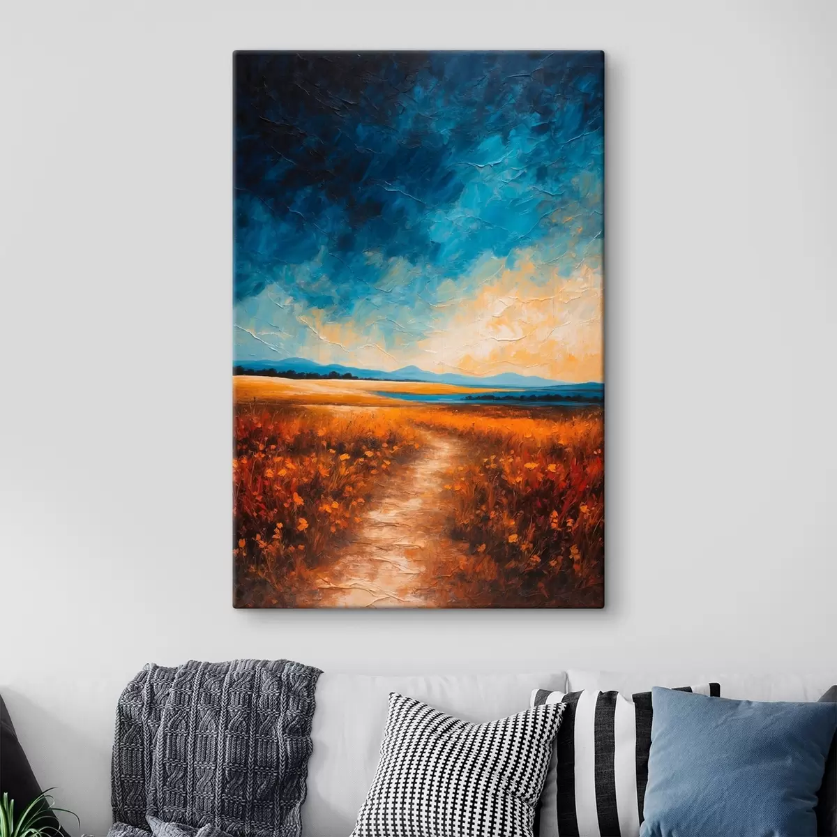 Das Gemälde kann sofort nach Erhalt aufgehängt werden. Das Gemälde wird auf einen 2 cm breiten Holzkeilrahmen aufgespannt.