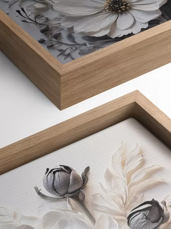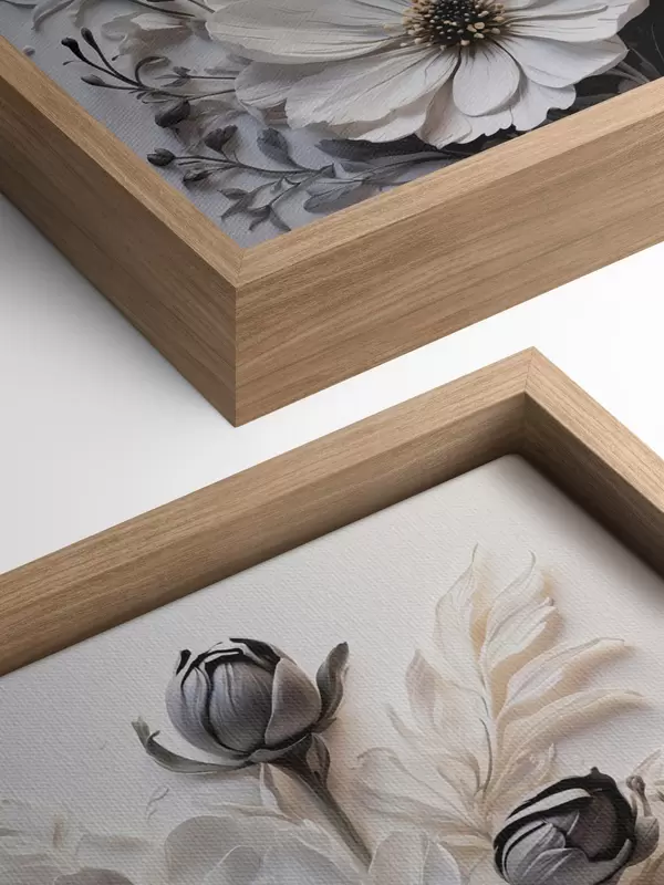 Gemälde Schwarze und weiße Blumen auf weißem Hintergrund Art. s44446