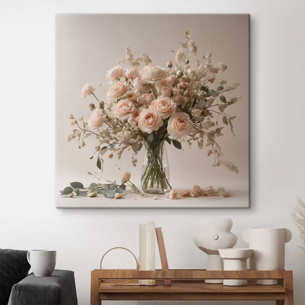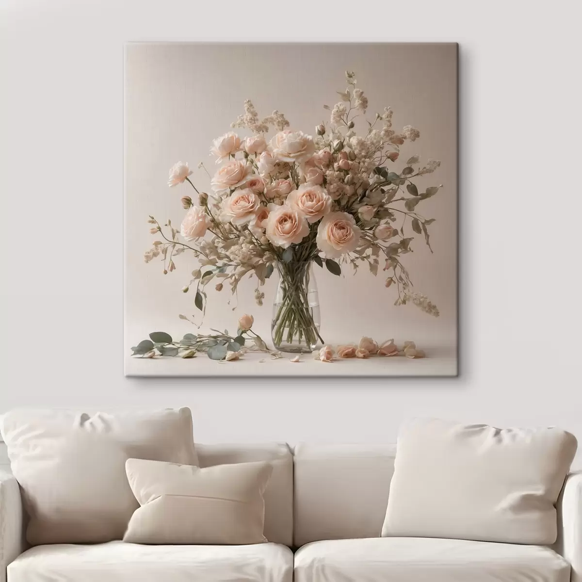 Gemälde Weiße Rosen in transparenter Vase Art. s44451