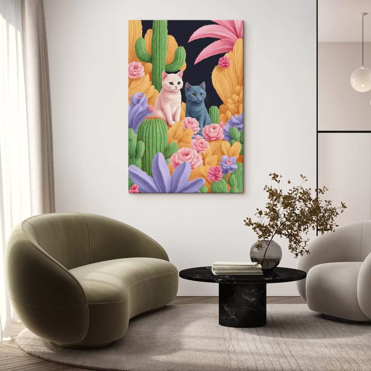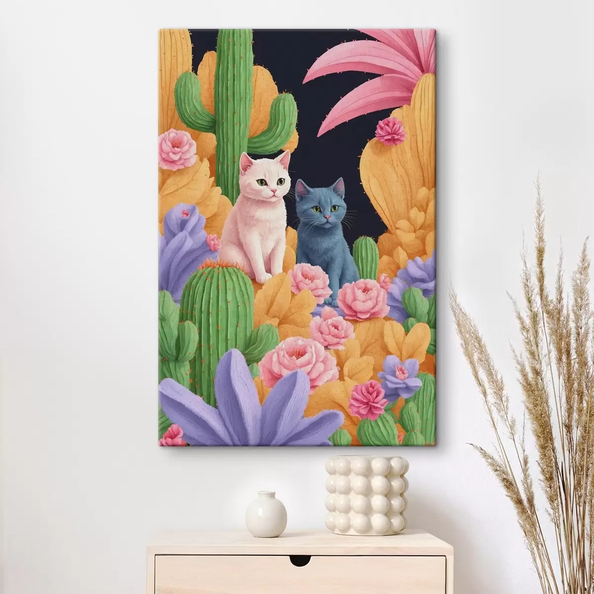 Gemälde Künstliche Katzen zwischen Blumen und Kakteen Art. s44452
