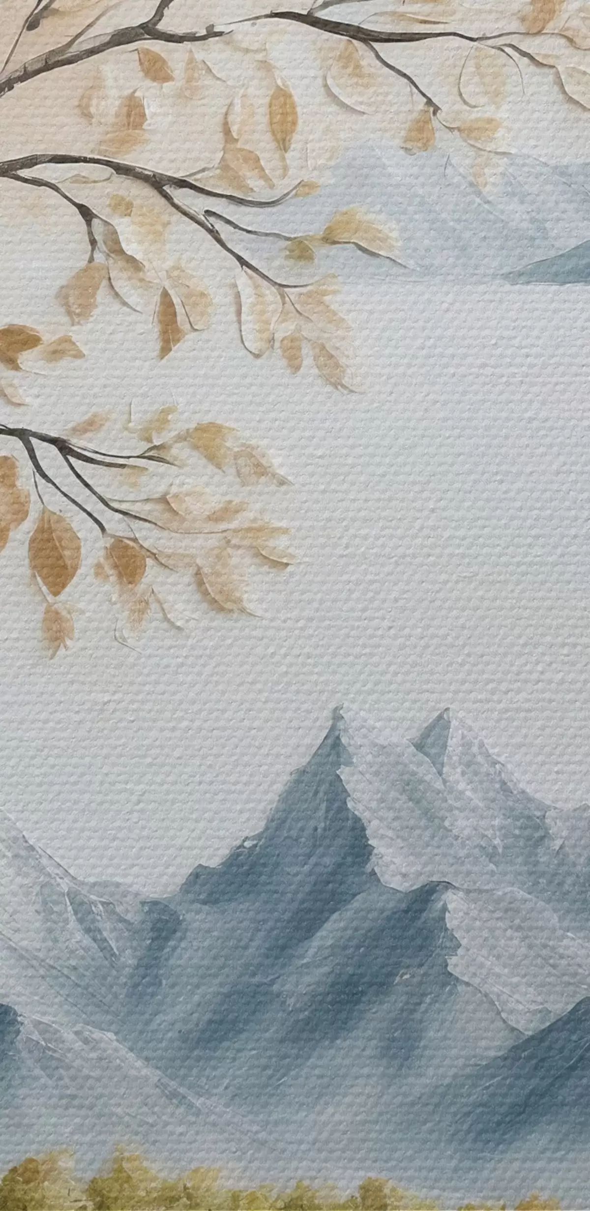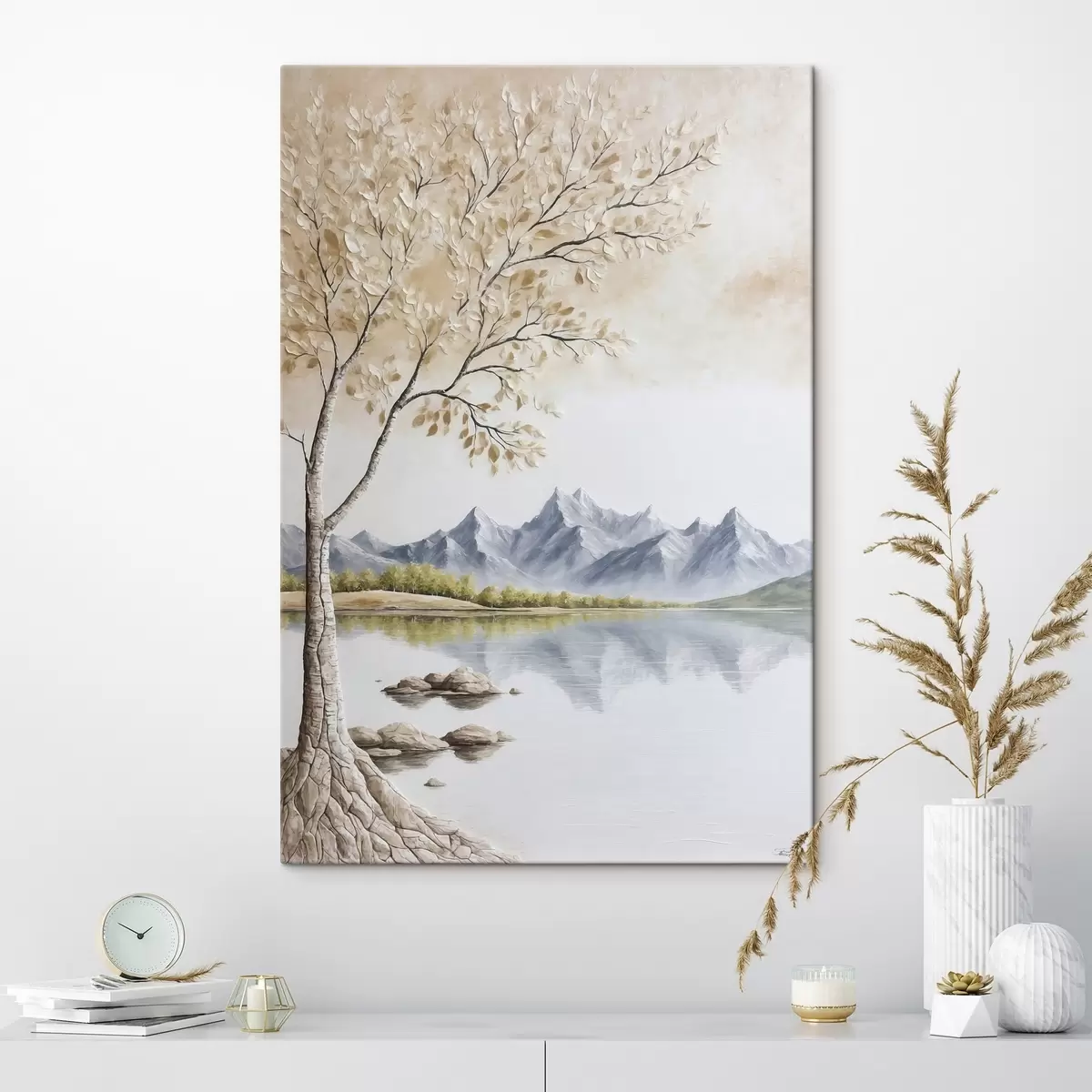 Gemälde Baum auf See und verschneite Berge im Hintergrund Art. s44459