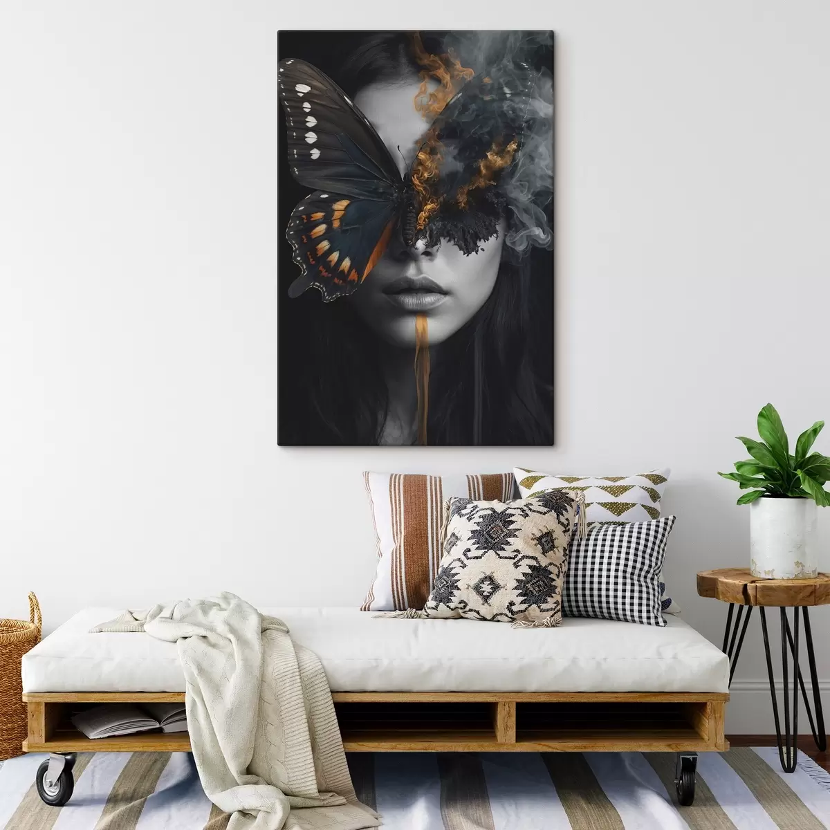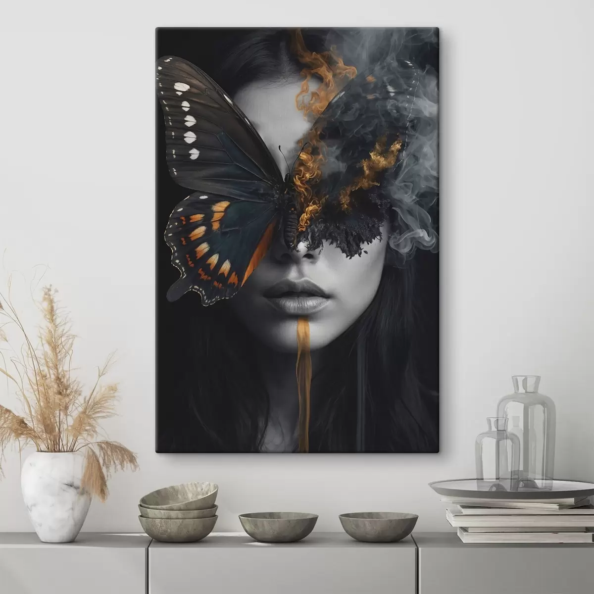 Gemälde Brennender Schmetterling auf dem Gesicht eines Mädchens Art. s44468