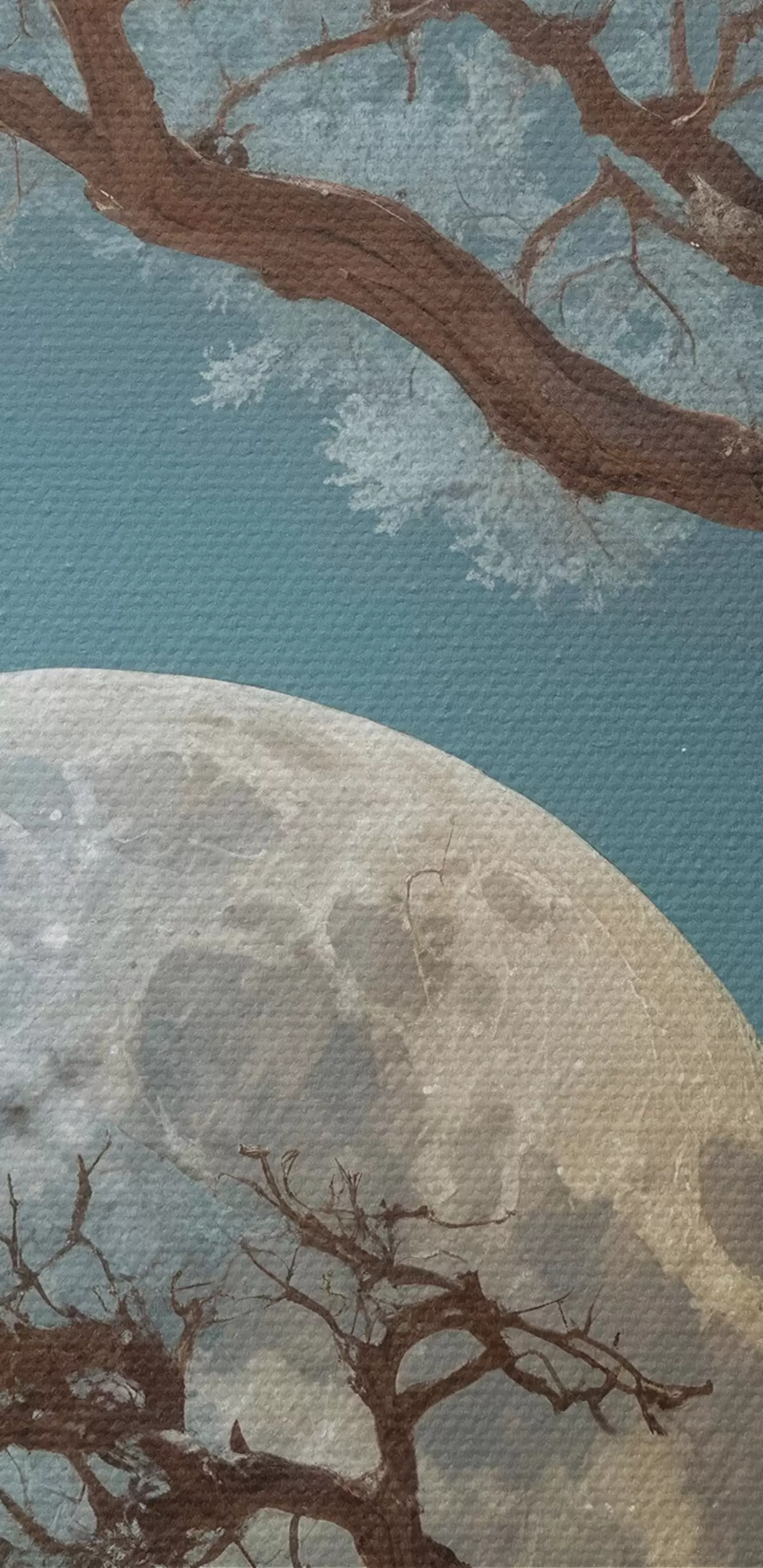 Gemälde Baum wächst in der Mitte eines Sees auf Mond Hintergrund Art. s44481