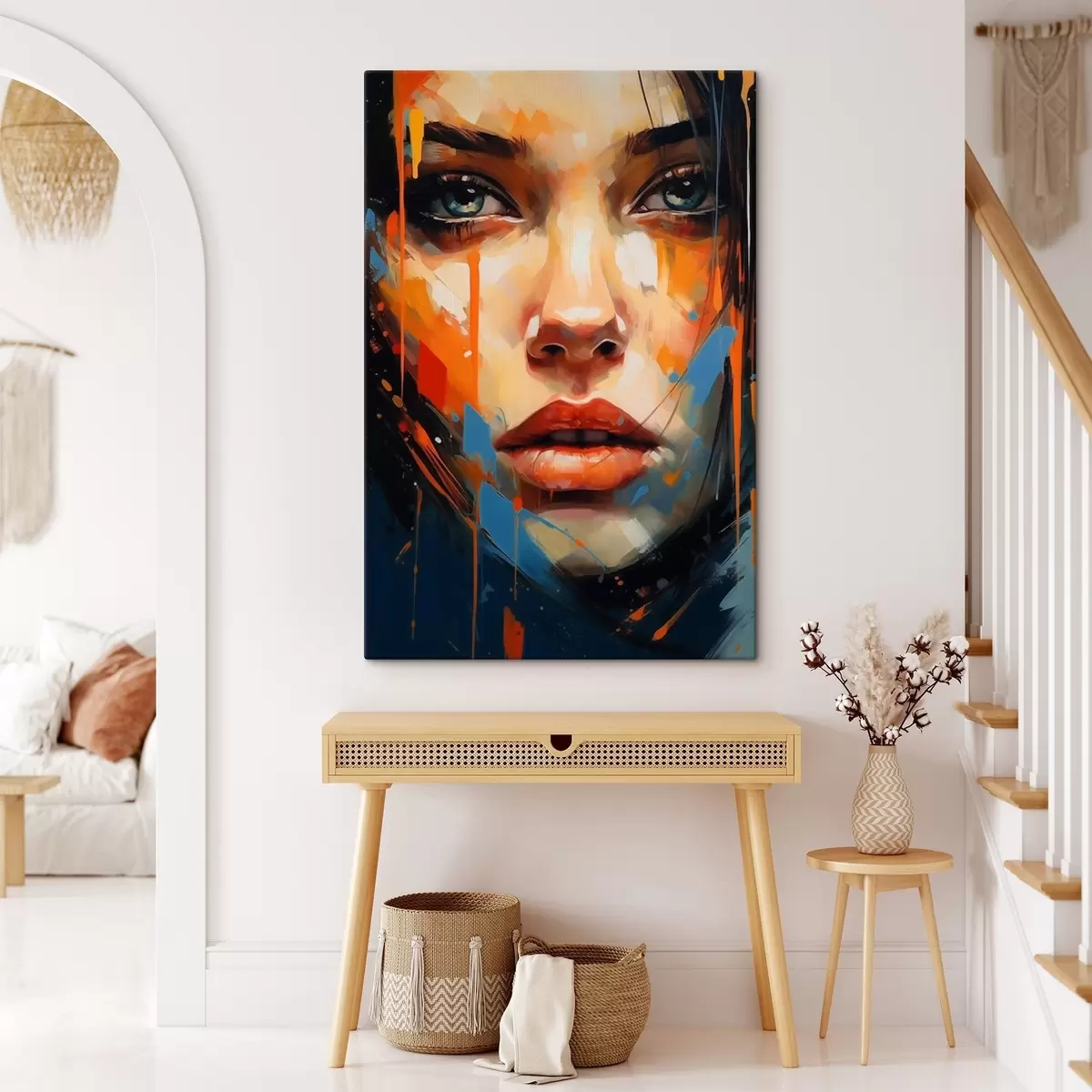 Gemälde Gesicht einer Frau mit hellen Strichen Art. s44485