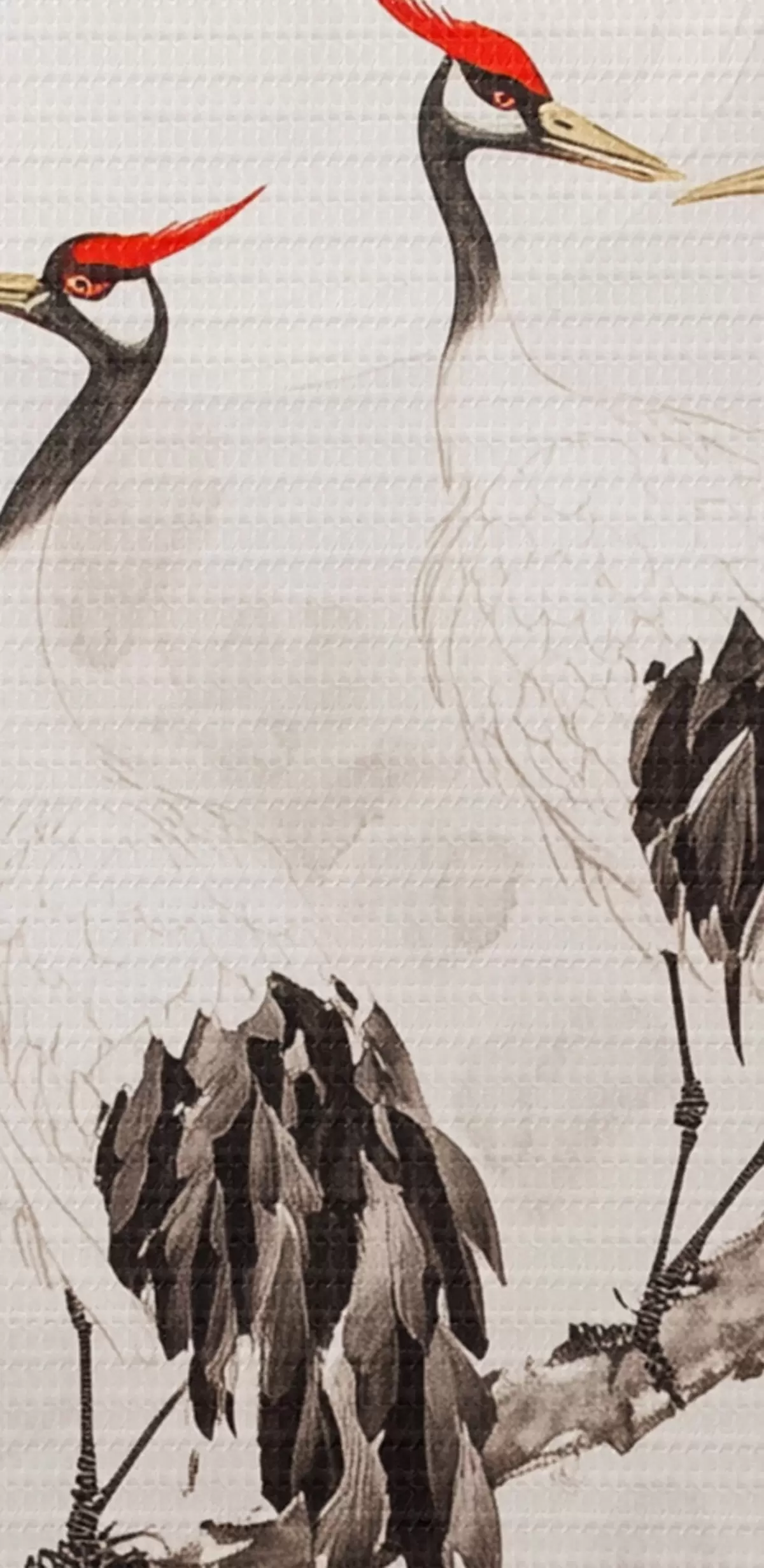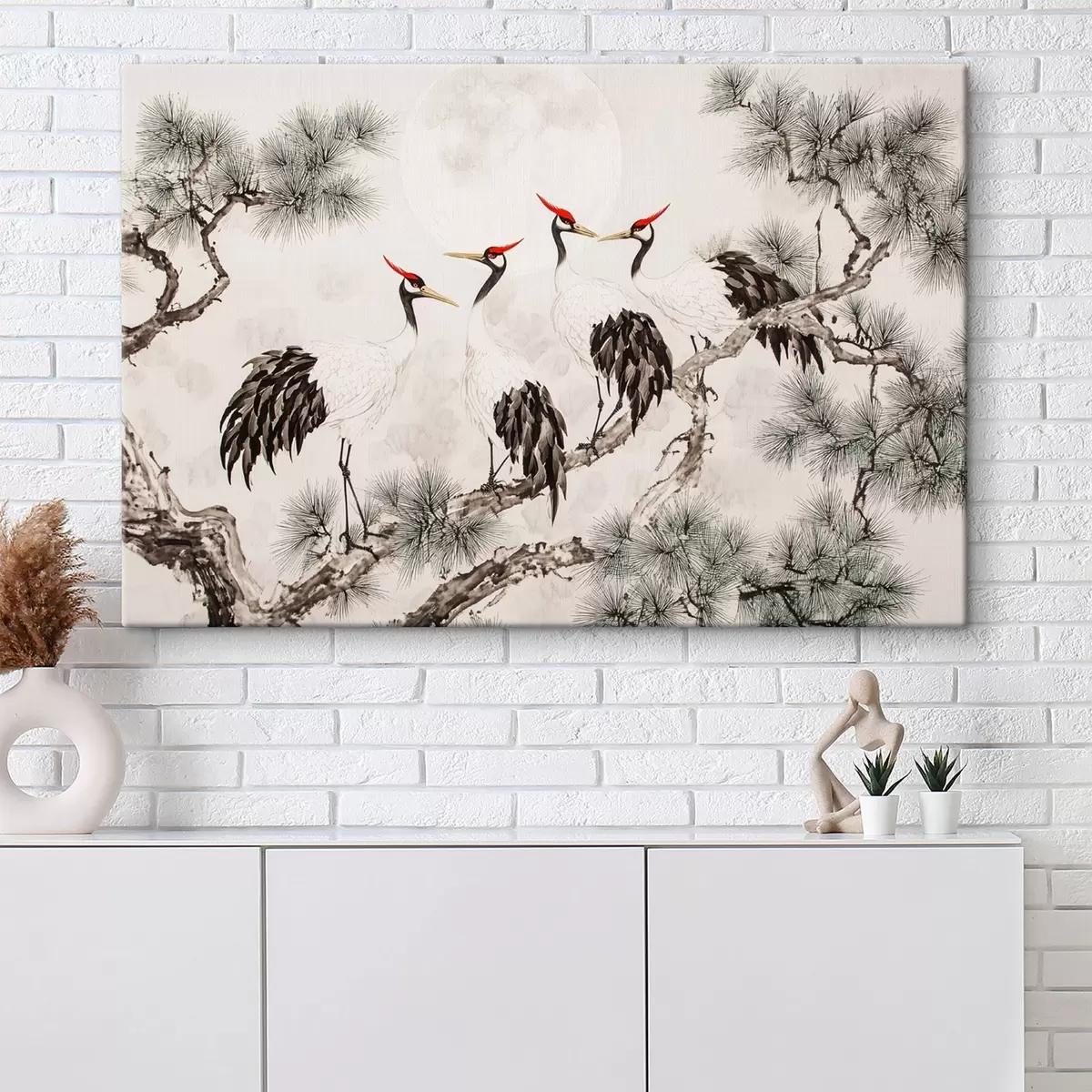 Gemälde Chinesische Kunst mit Kranichen und Kiefern, orientalischer Stil, Natur Art. s44503