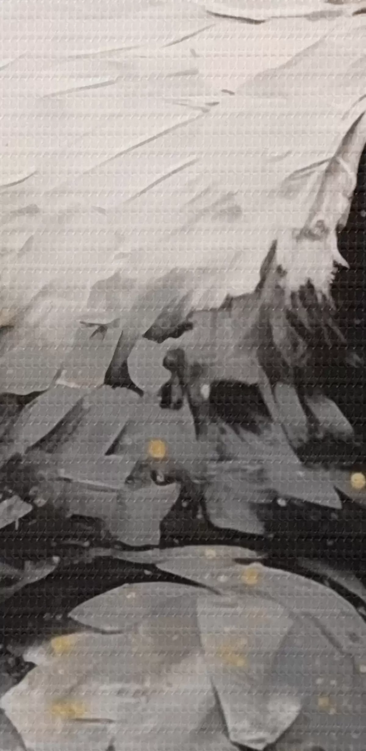 Das Bild kann vorsichtig mit einem trockenen, weichen Tuch oder Schwamm abgewischt werden; es wird nicht empfohlen, feuchte Produkte zu verwenden. Die Verwendung eines feuchten Schwamms ist nur zulässig, wenn das Bild lackiert wurde.