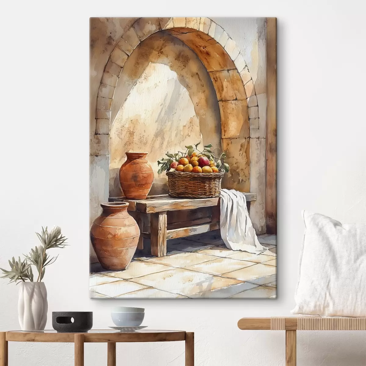 Gemälde Ästhetische Vasen und Weidenkorb mit Orangen, Toskana, rustikaler Stil Art. s44605