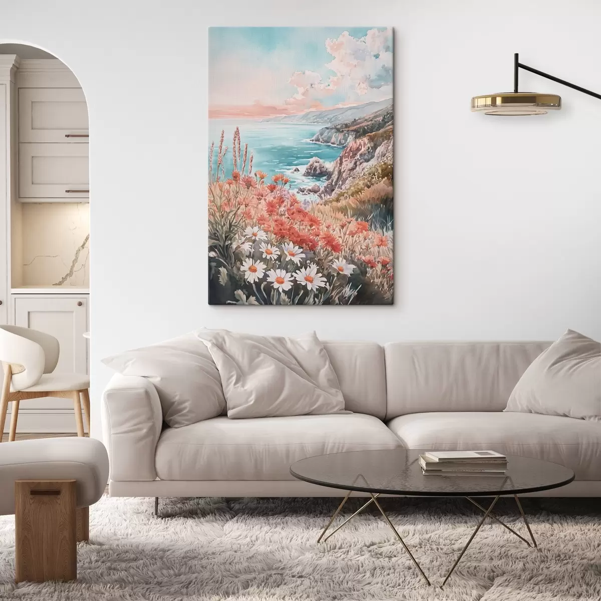 Gemälde Portugal Ozean Küste auf den Sonnenuntergang, Wiese Blumen Art. s44612