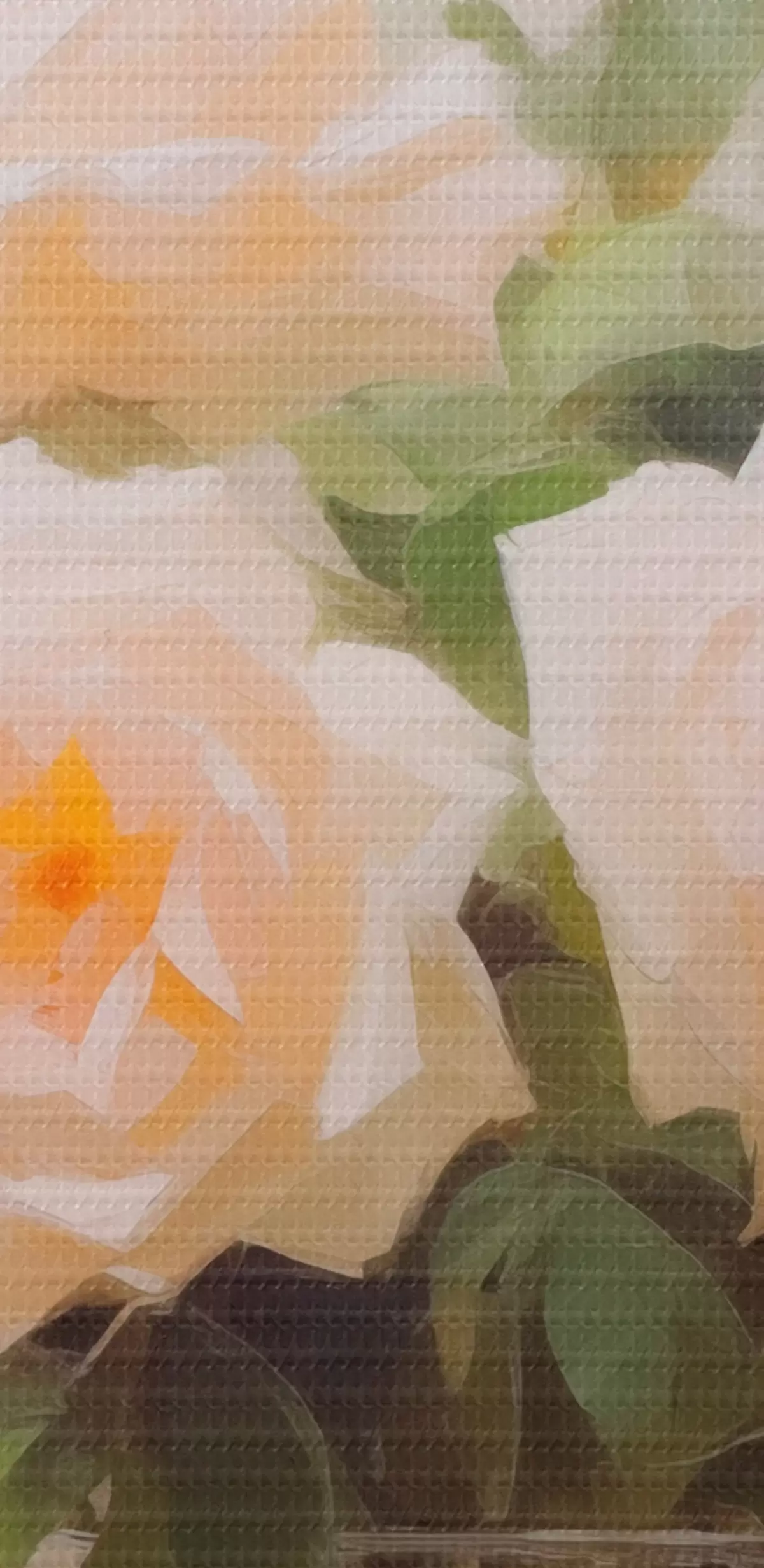 Das feine Fadengeflecht auf dieser Leinwand ähnelt der Oberfläche von professionellen Künstlerleinwänden.