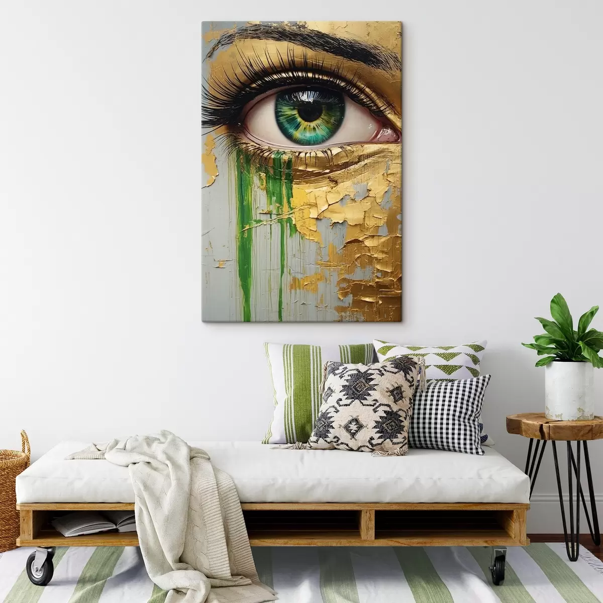 Gemälde Grünes Auge auf dem Hintergrund von gerissener Farbe Art. s44690