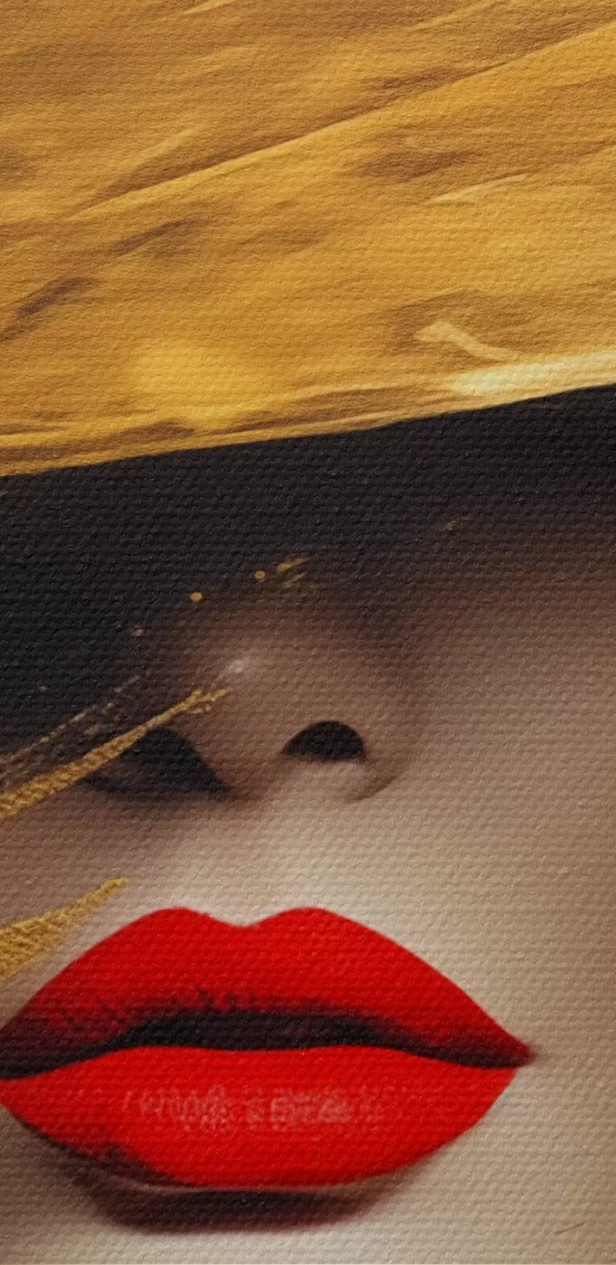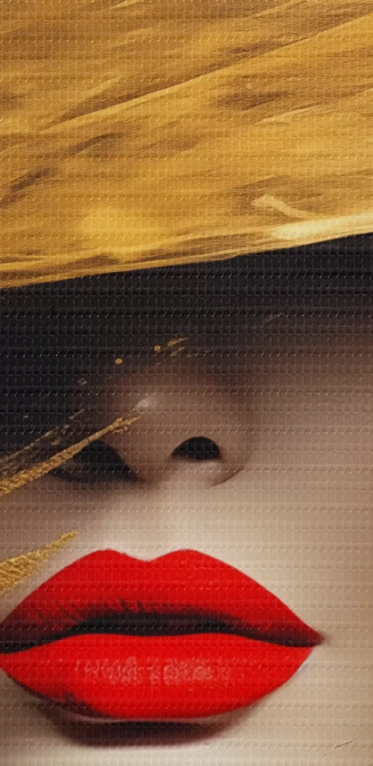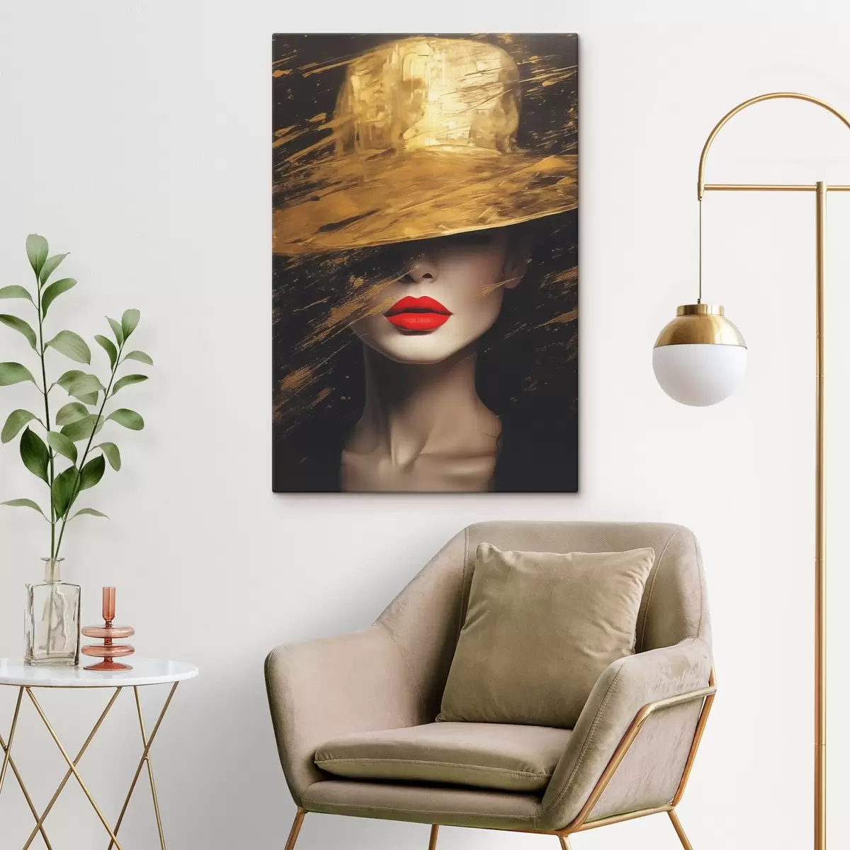 Gemälde Weibliches Gesicht mit rotem Lippenstift unter breitem Hut Art. s44691