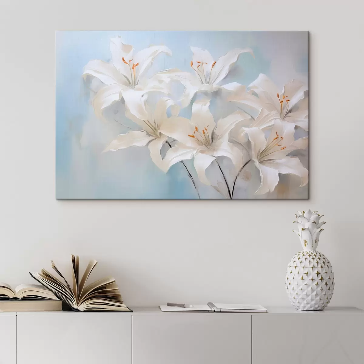 Drei Materialtypen stehen zur Verfügung: Economic Canvas - ein dichtes und haltbares Material für den Digitaldruck, identisch mit Malerleinwand, wasserfeste Oberfläche, realistische Wiedergabe von Details, mittelkörniges Material. Premium Canvas - die Textur ähnelt der einer Malerleinwand (verwobene kleine Fäden). Weiche, detaillierte Wiedergabe des Bildes auf einer matten Oberfläche. Eco-Premium - hochwertiges Gewebe aus 100% Baumwolle. Dank der natürlichen Baumwollfasern ist das Material langlebig und verschleißfest. Hervorragende Farbwiedergabe und Detailtreue.