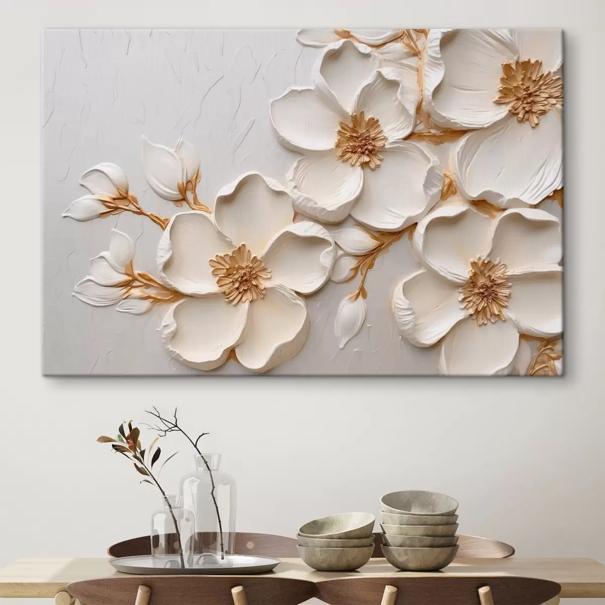 Drei Materialtypen stehen zur Verfügung: Economic Canvas - ein dichtes und haltbares Material für den Digitaldruck, identisch mit Malerleinwand, wasserfeste Oberfläche, realistische Wiedergabe von Details, mittelkörniges Material. Premium Canvas - die Textur ähnelt der einer Malerleinwand (verwobene kleine Fäden). Weiche, detaillierte Wiedergabe des Bildes auf einer matten Oberfläche. Eco-Premium - hochwertiges Gewebe aus 100% Baumwolle. Dank der natürlichen Baumwollfasern ist das Material langlebig und verschleißfest. Hervorragende Farbwiedergabe und Detailtreue.