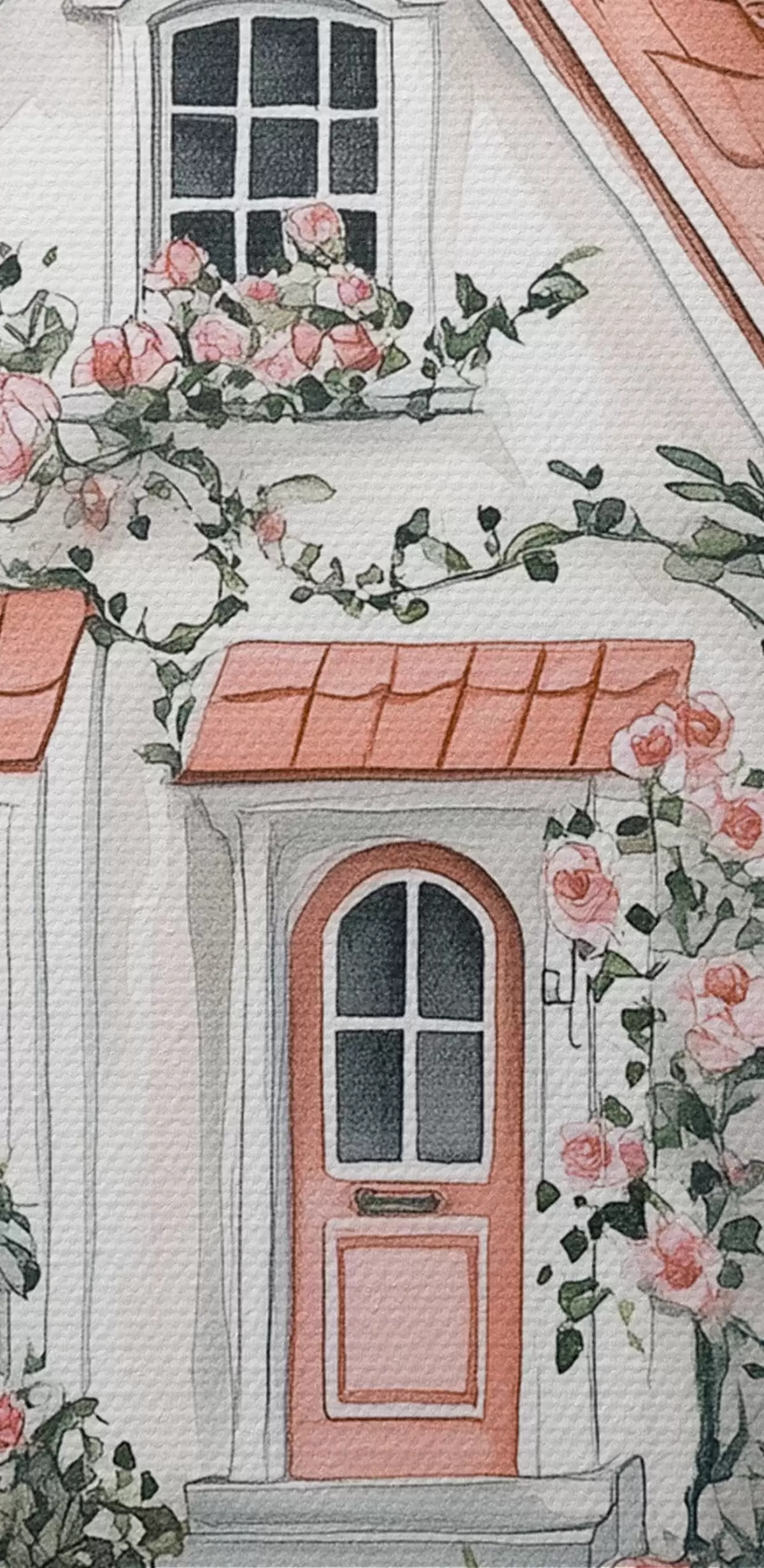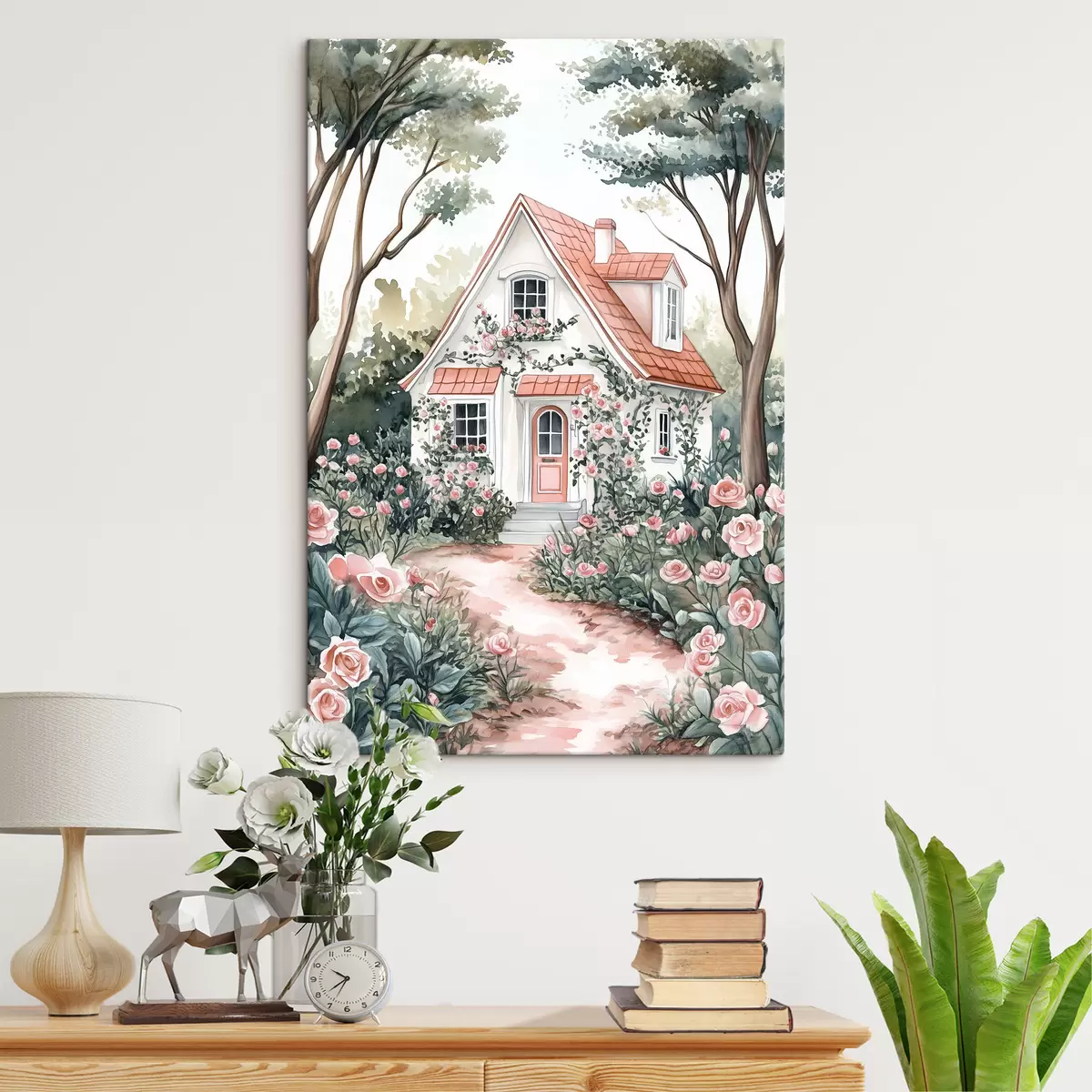 Gemälde Weißes Haus mit Rosengarten im Wald Art. s44716