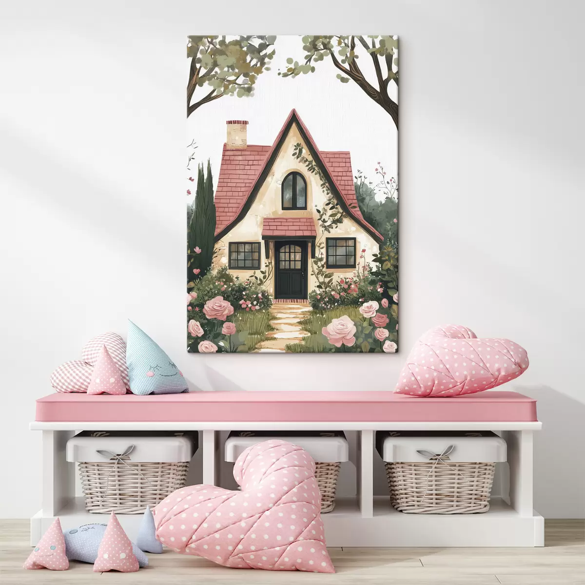 Gemälde Ein märchenhaftes Haus im Wald, Rosen, Pastellfarben Art. s44718