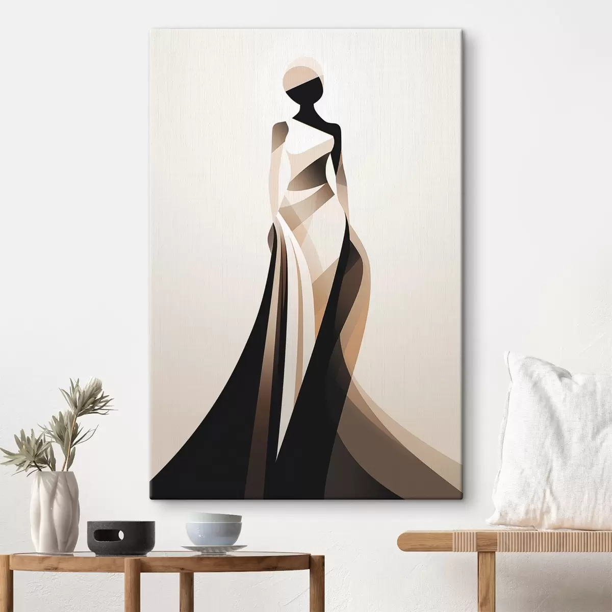 Gemälde Weibliche Silhouette in Beige- und Schwarztönen Art. s44749