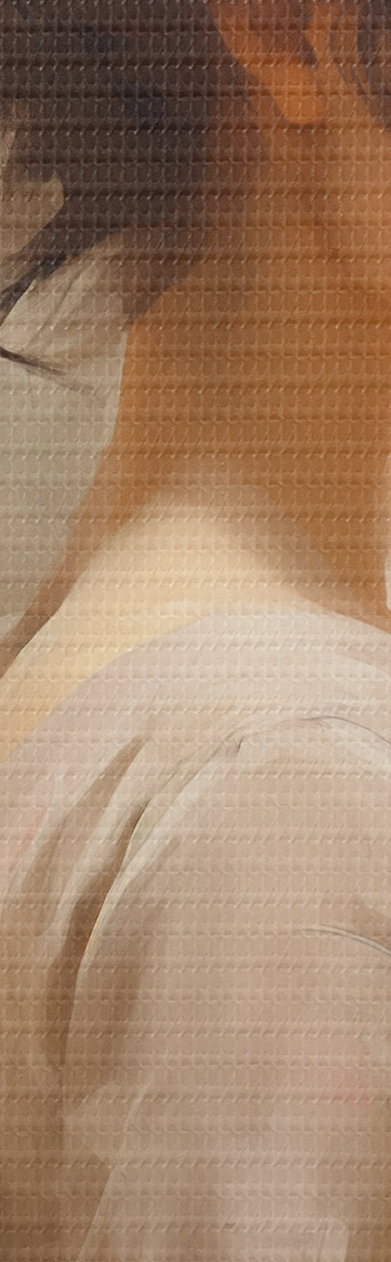Um die Leinwand auf Keilrahmen zu spannen, ohne das Bild zu beschädigen, verwenden wir ein gespiegeltes Bild.