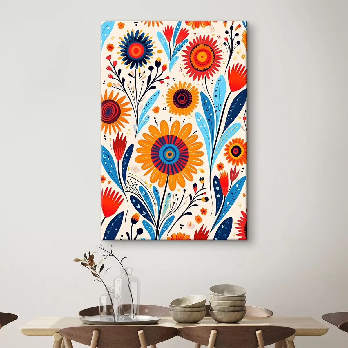 Gemälde Stilisierte Blumen in blauer und orangefarbener Palette Art. s44761