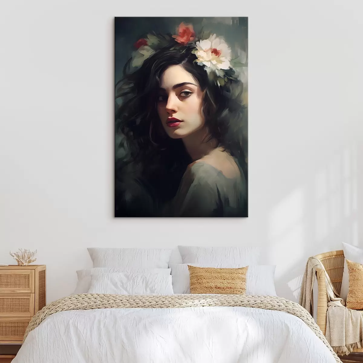Gemälde Dunkelhaarige Frau mit einer Blumenkrone Art. s44762