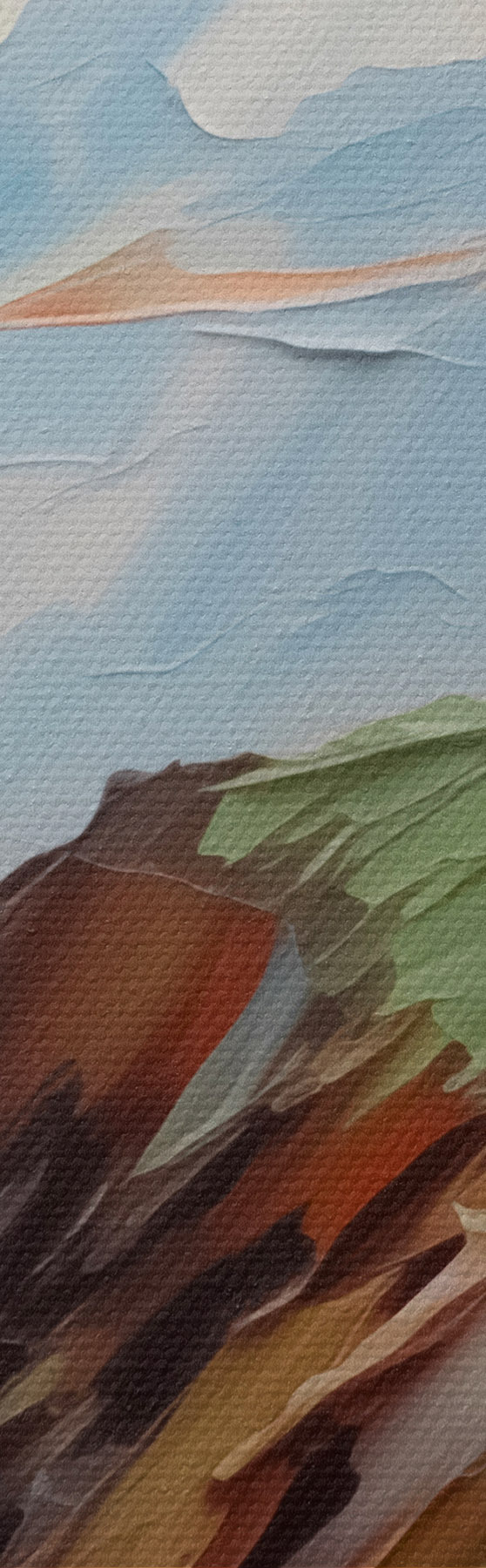 Drei Materialtypen stehen zur Verfügung: Economic Canvas - ein dichtes und haltbares Material für den Digitaldruck, identisch mit Malerleinwand, wasserfeste Oberfläche, realistische Wiedergabe von Details, mittelkörniges Material. Premium Canvas - die Textur ähnelt der einer Malerleinwand (verwobene kleine Fäden). Weiche, detaillierte Wiedergabe des Bildes auf einer matten Oberfläche. Eco-Premium - hochwertiges Gewebe aus 100% Baumwolle. Dank der natürlichen Baumwollfasern ist das Material langlebig und verschleißfest. Hervorragende Farbwiedergabe und Detailtreue.
