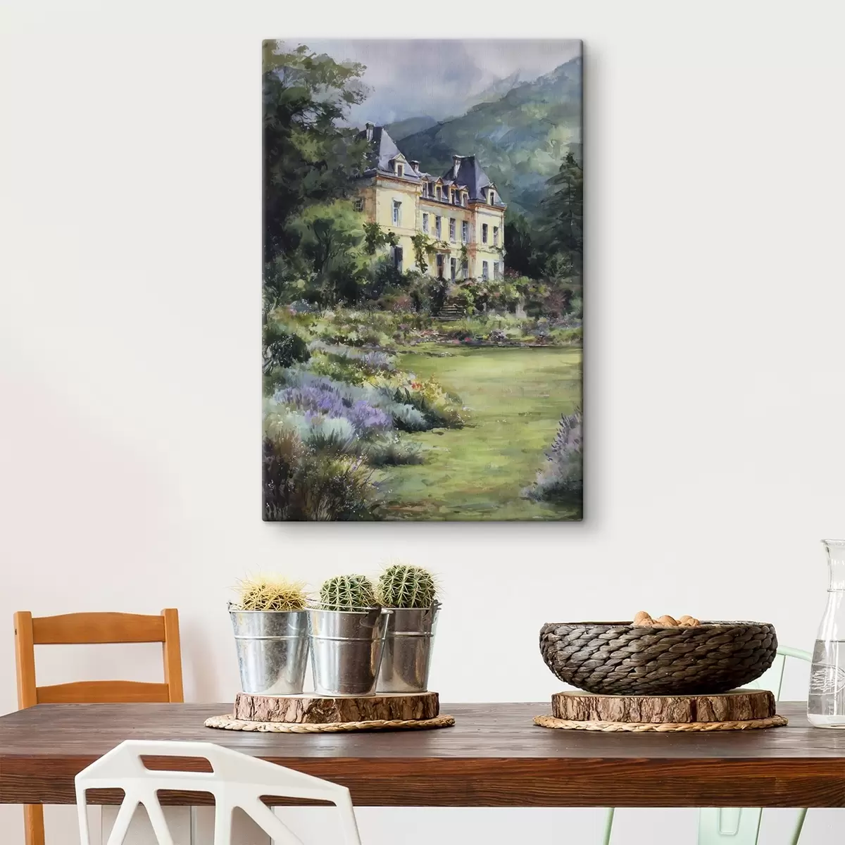 Gemälde Französisches Schloss, umgeben von einem Garten mit Lavendel Art. s44797