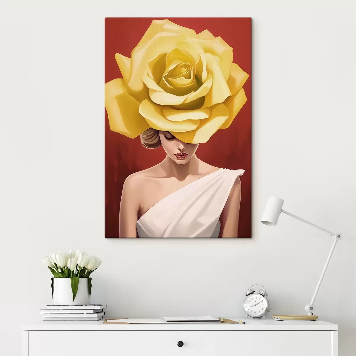 Fototapete Frau mit gelbem Rosenhut s44800