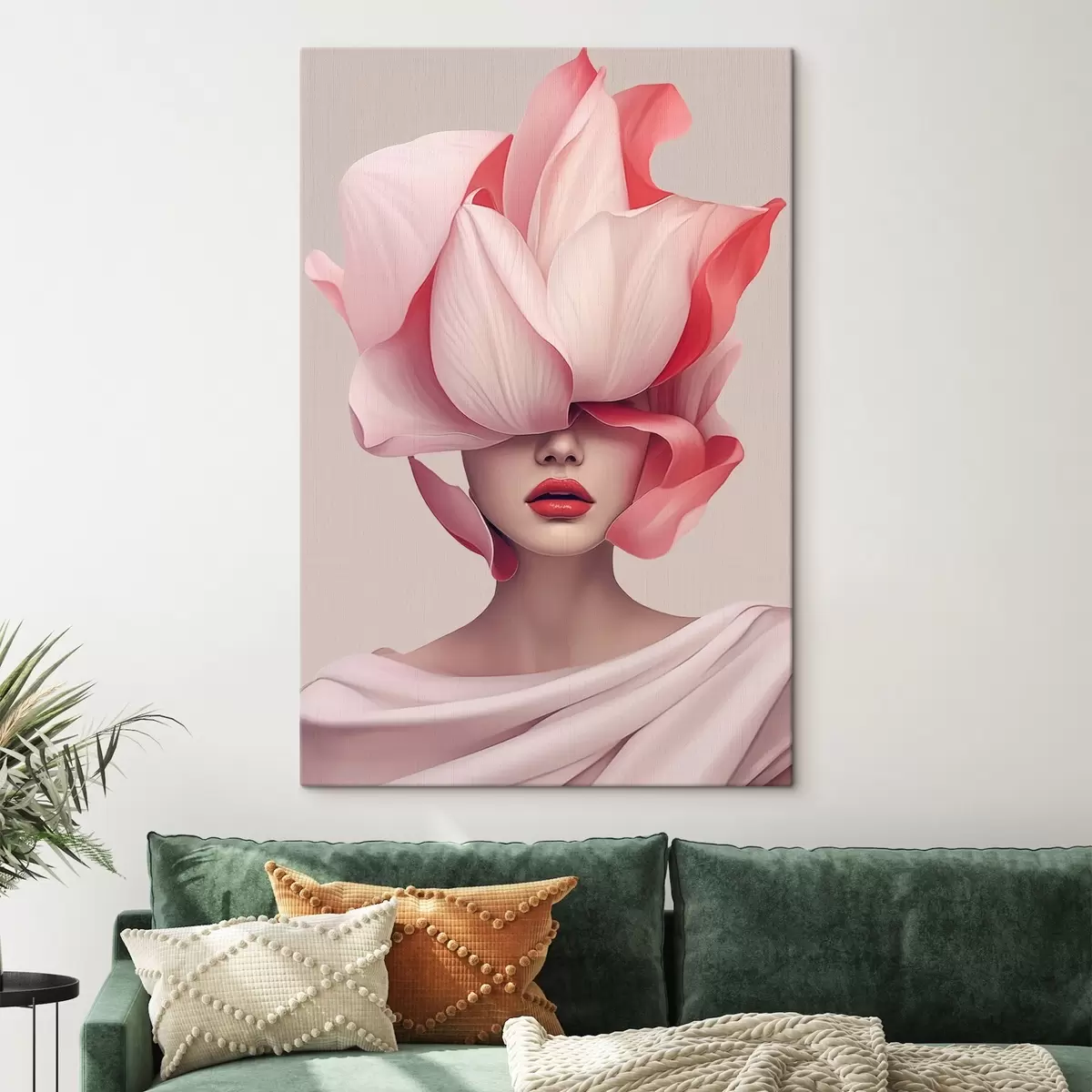 Gemälde Weibliches Porträt mit großen Blütenblättern Art. s44812