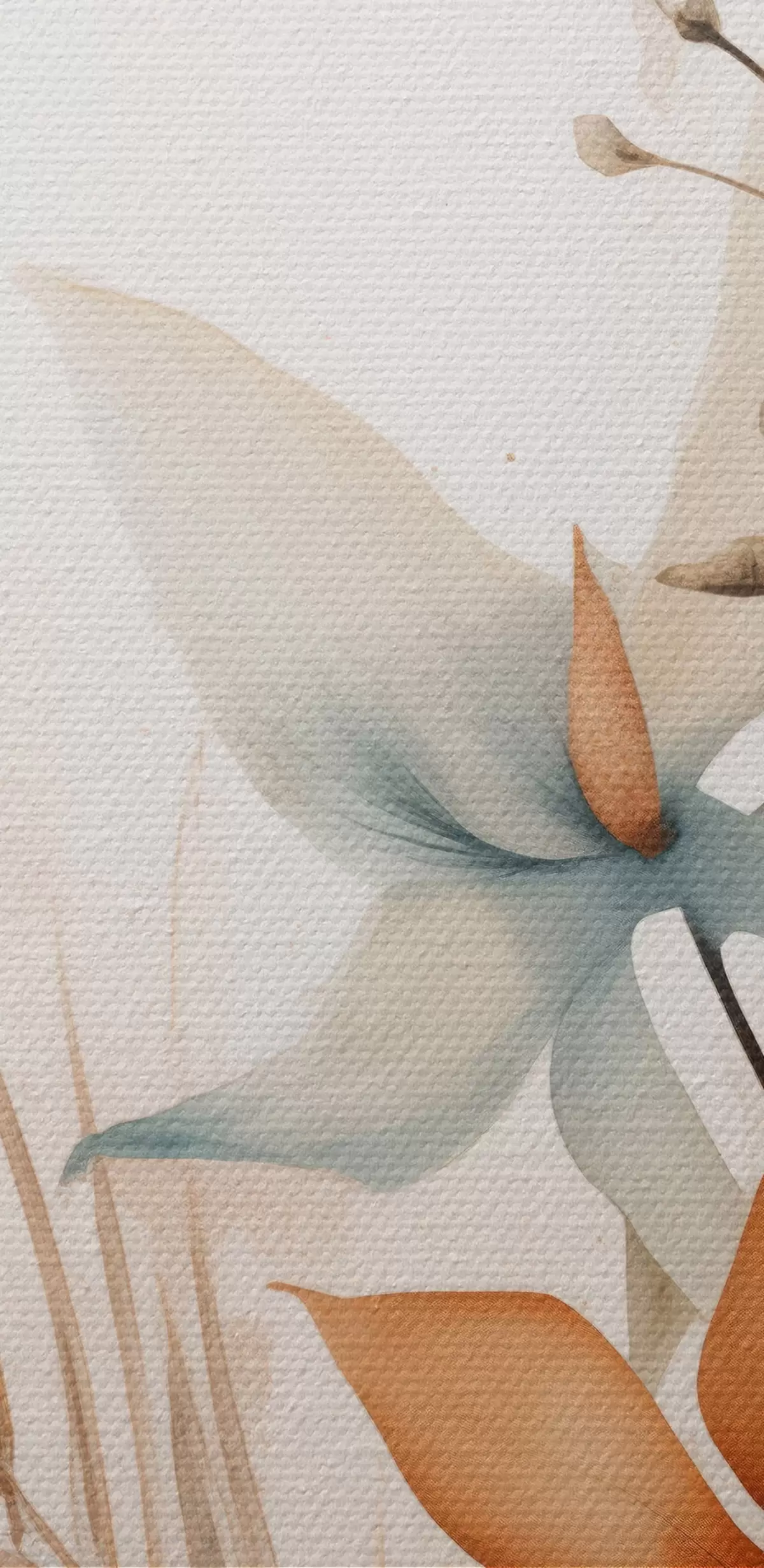 Drei Materialtypen stehen zur Verfügung: Economic Canvas - ein dichtes und haltbares Material für den Digitaldruck, identisch mit Malerleinwand, wasserfeste Oberfläche, realistische Wiedergabe von Details, mittelkörniges Material. Premium Canvas - die Textur ähnelt der einer Malerleinwand (verwobene kleine Fäden). Weiche, detaillierte Wiedergabe des Bildes auf einer matten Oberfläche. Eco-Premium - hochwertiges Gewebe aus 100% Baumwolle. Dank der natürlichen Baumwollfasern ist das Material langlebig und verschleißfest. Hervorragende Farbwiedergabe und Detailtreue.