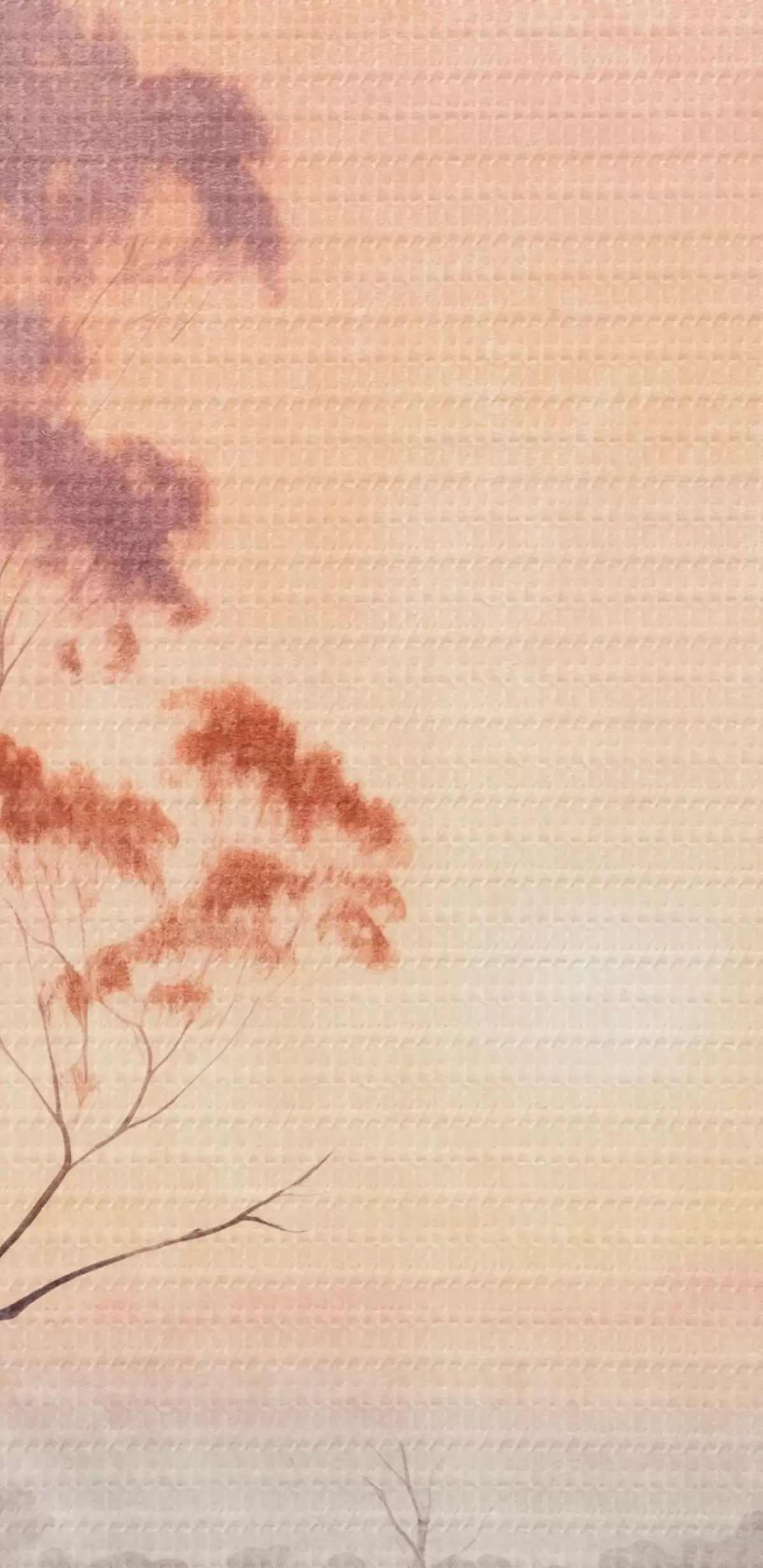 Fototapete Ein Landschaftsgemälde eines Feldes mit hohem Gras und Bäumen, die Sonne ist im Hintergrund s44854