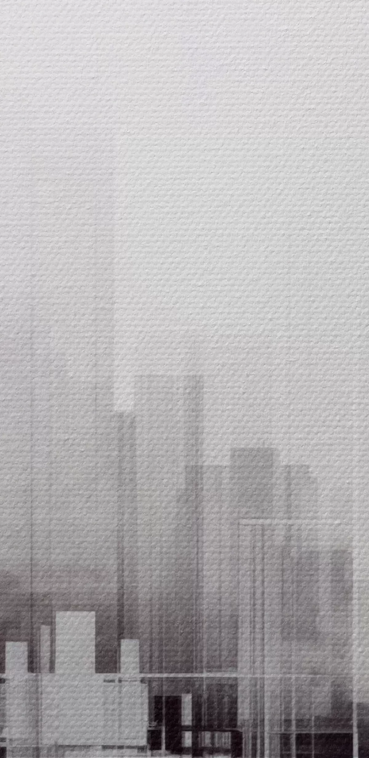 Fototapete Texturierte minimalistische Stadtlandschaft mit hohen Gebäuden und Wolkenkratzern, die sich gegen einen weißen Himmel abheben s44863