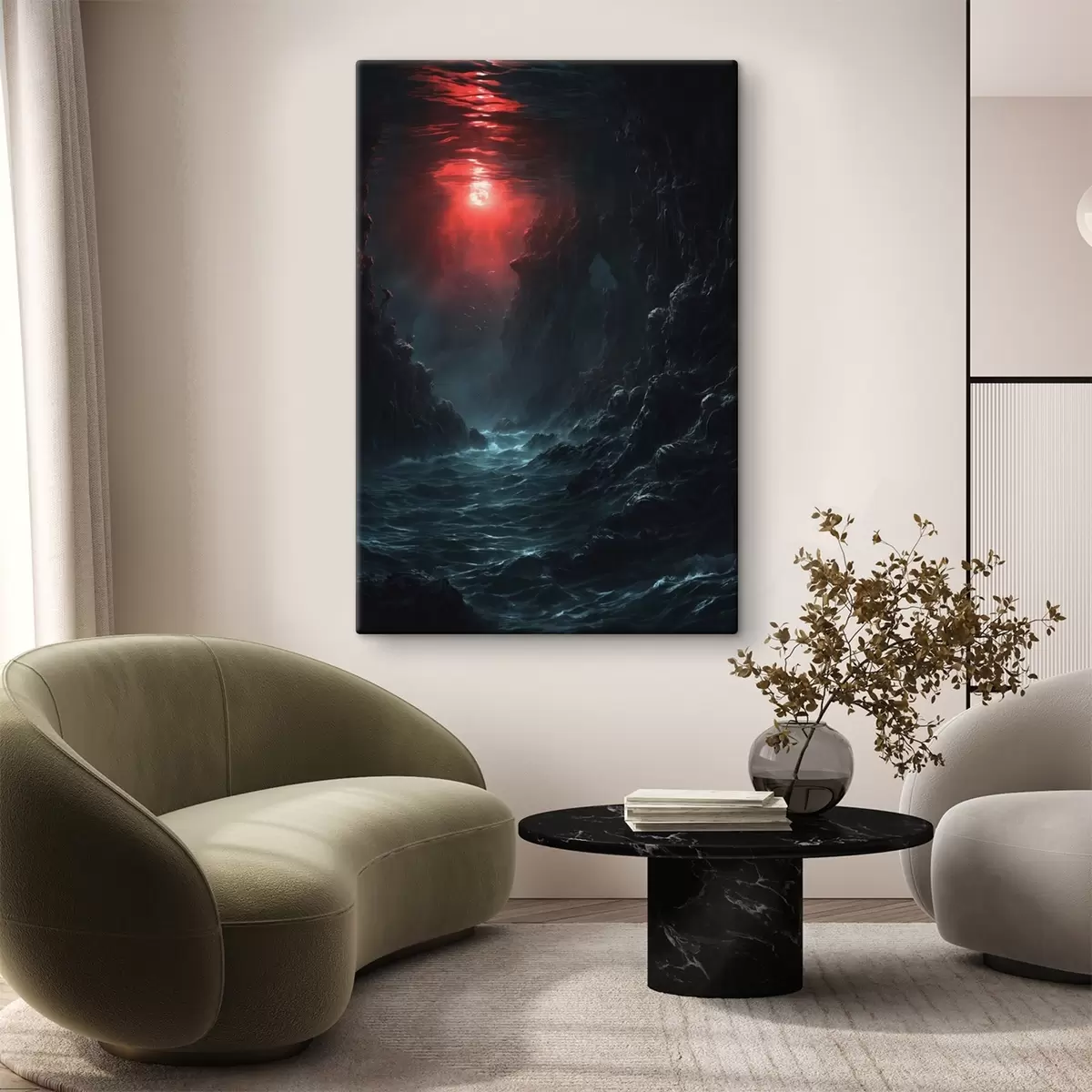 Gemälde Dunkle Meeresschlucht mit rotem Licht von oben Art. s44870