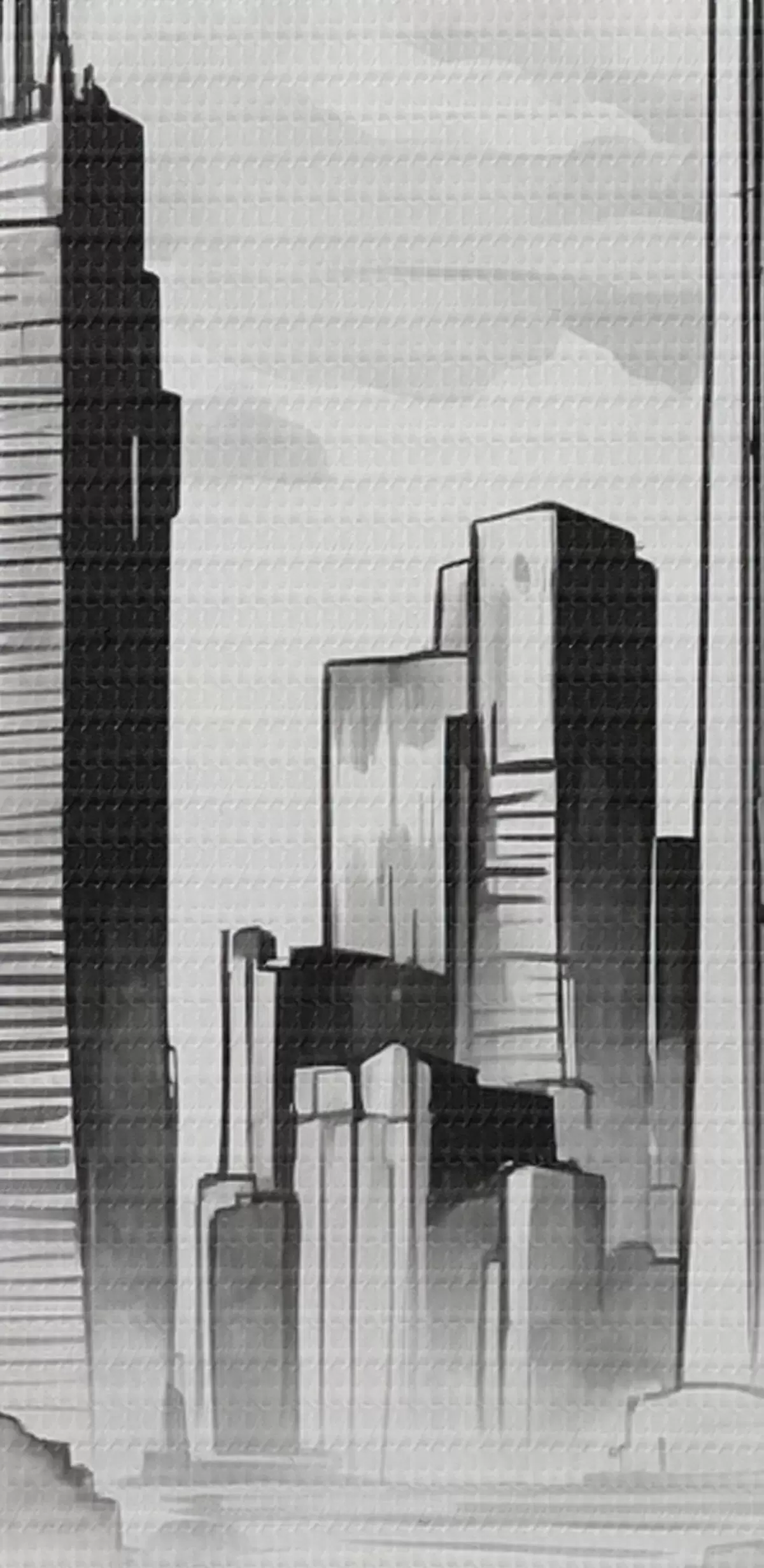 Fototapete Retro-Auto auf dem Hintergrund der monochromen Stadt mit Wolkenkratzern s44871