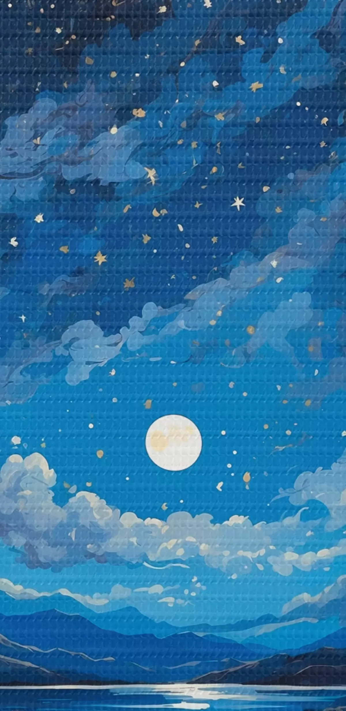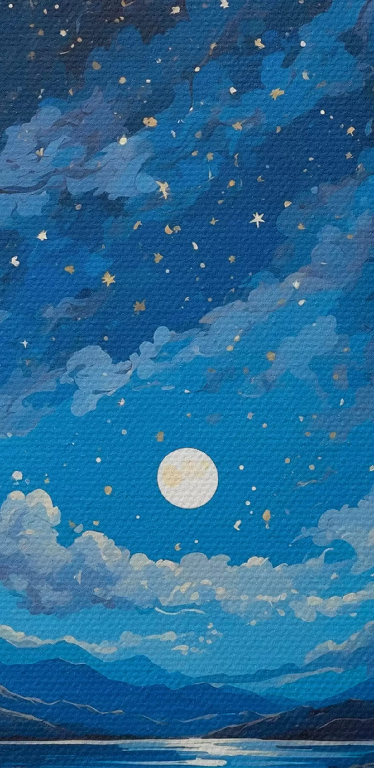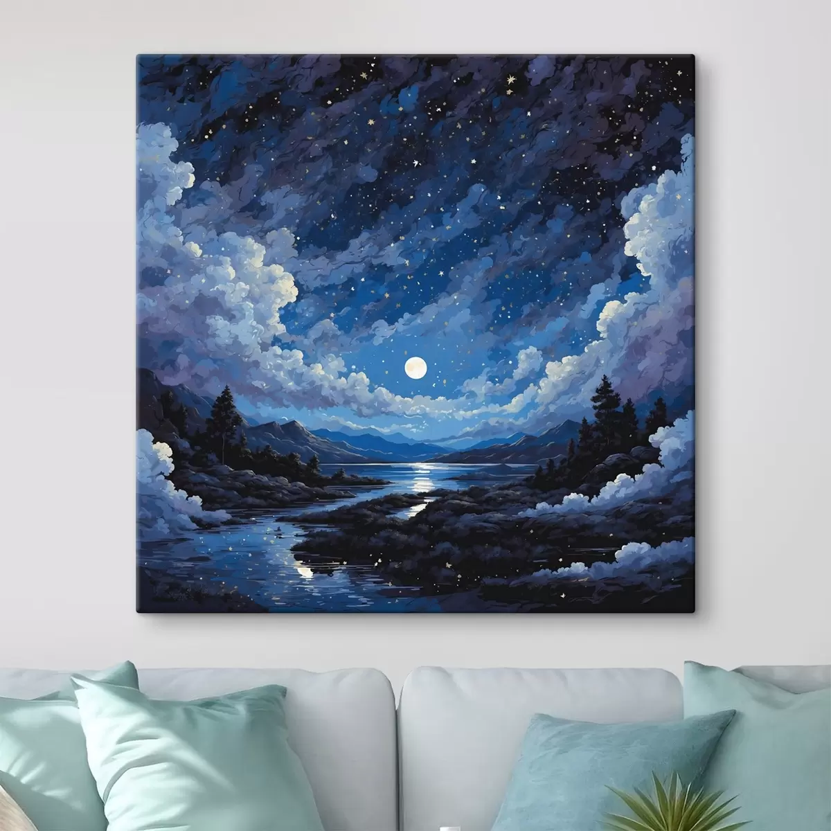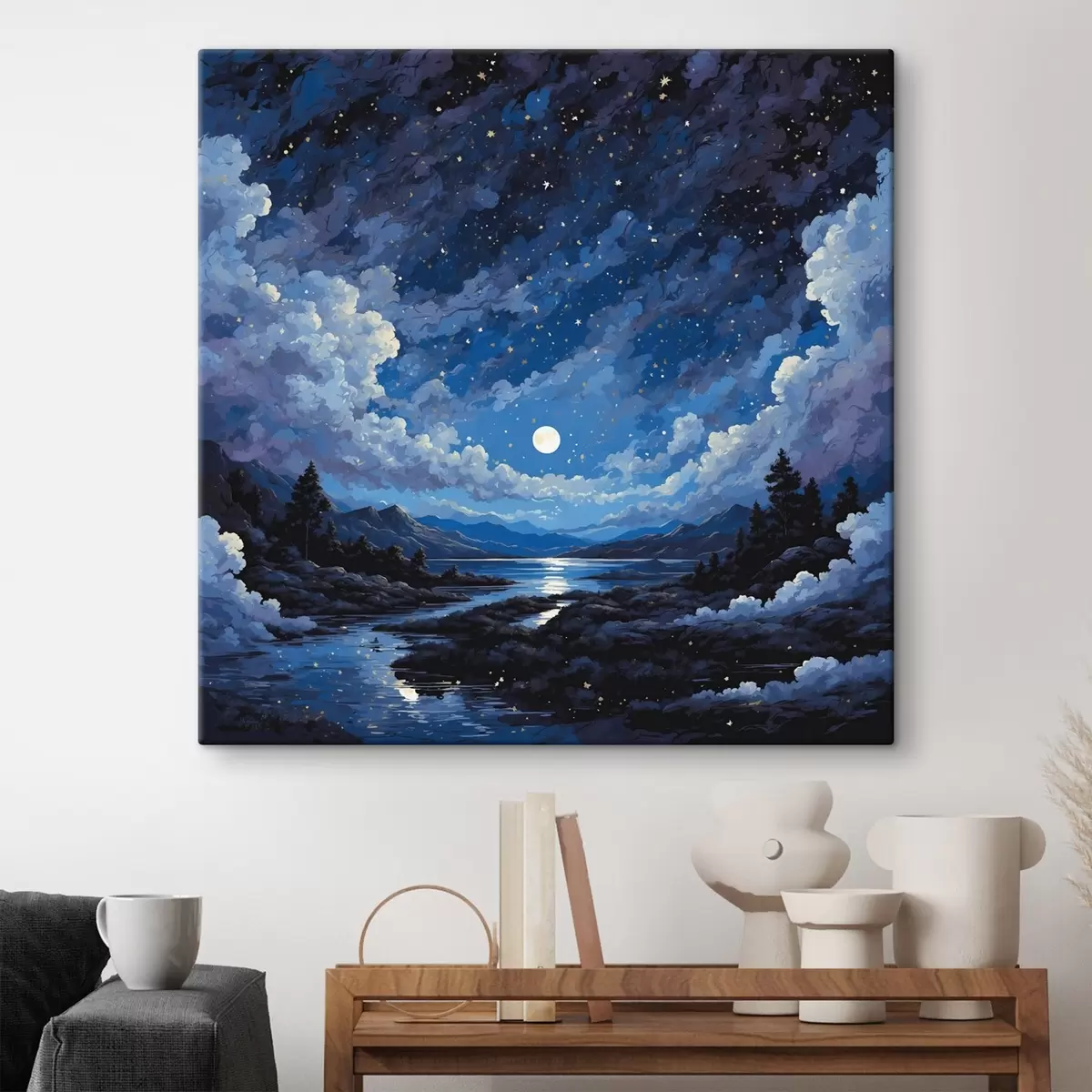 Gemälde Nachthimmel mit Mond und Sternen über einer Berglandschaft Art. s44872