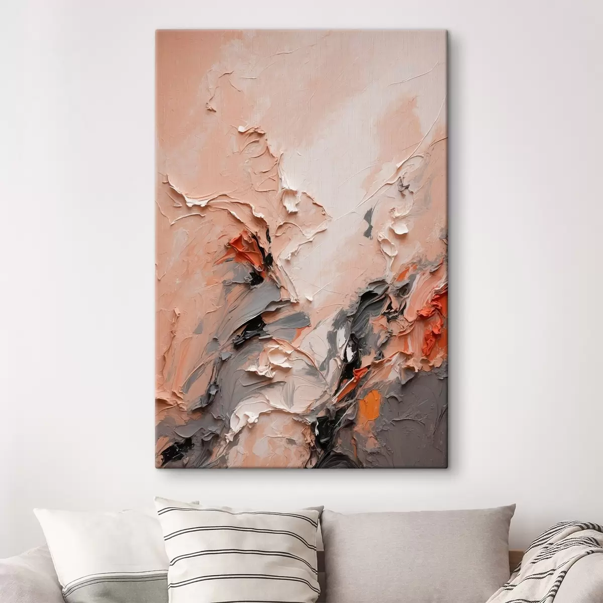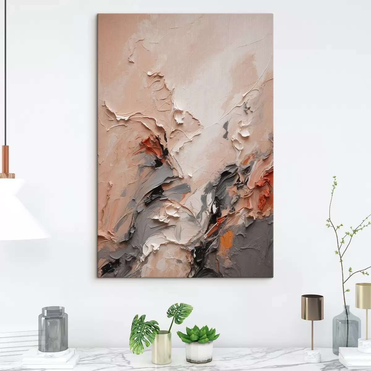 Gemälde Abstrakt in pfirsichfarbenen Grautönen mit strukturierten Strichen Art. s44873