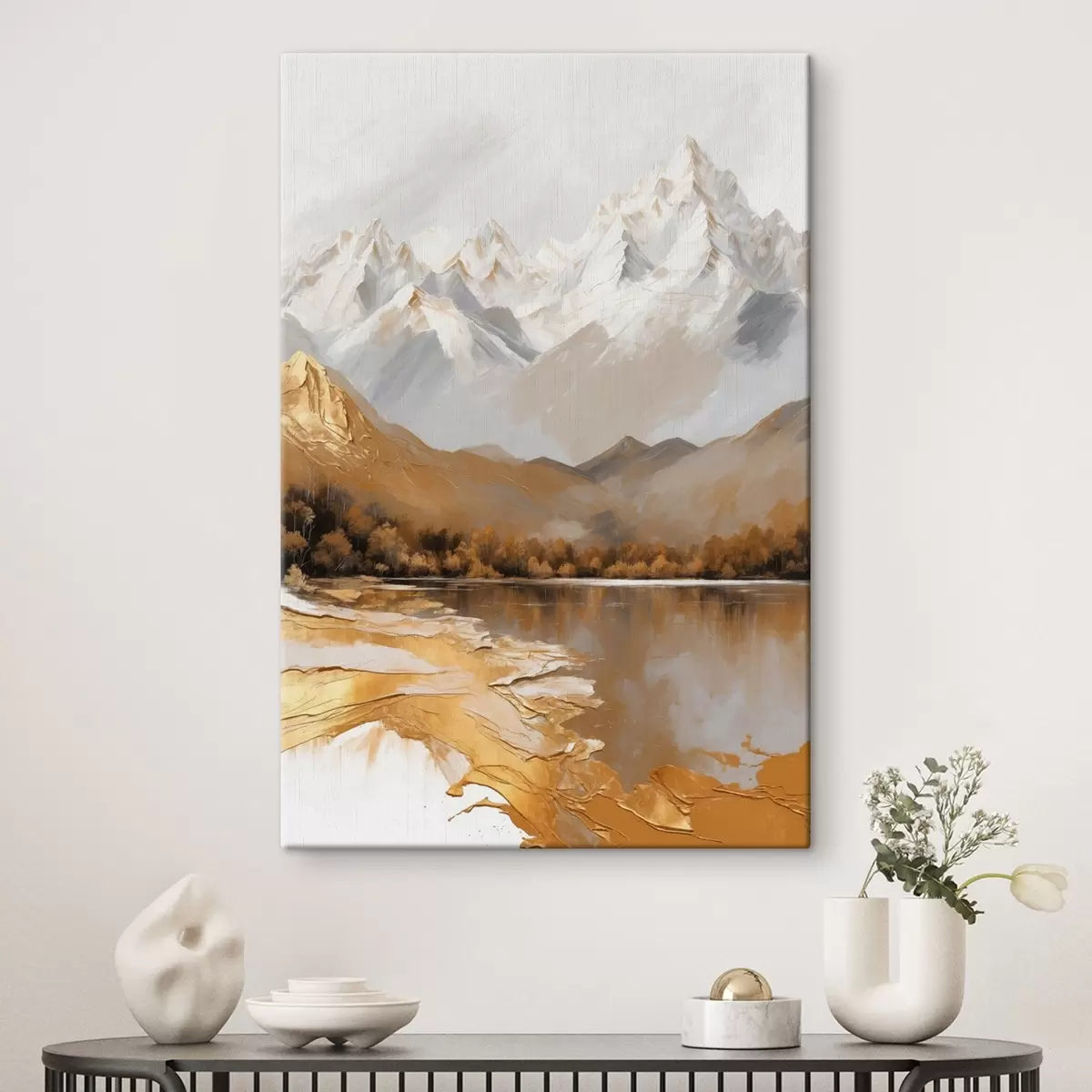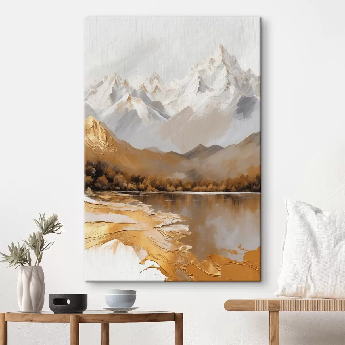 Gemälde Berglandschaft mit einem See in warmen Farben Art. s44877
