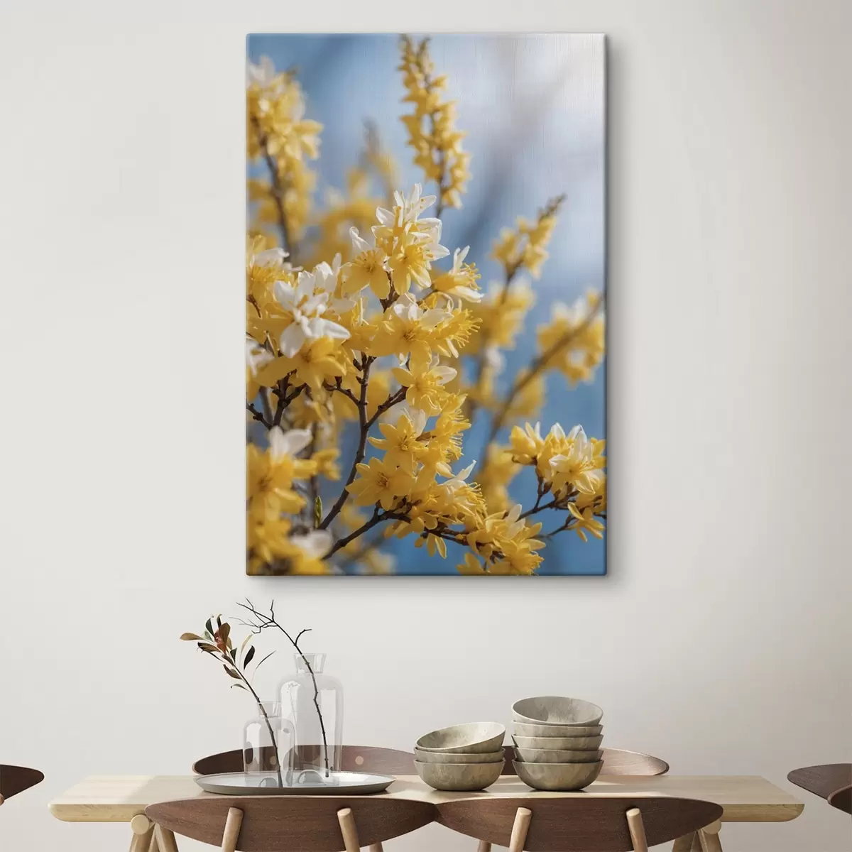 Gemälde Gelbe Blumen auf blauem Hintergrund mit Weichzeichner Art. s44894