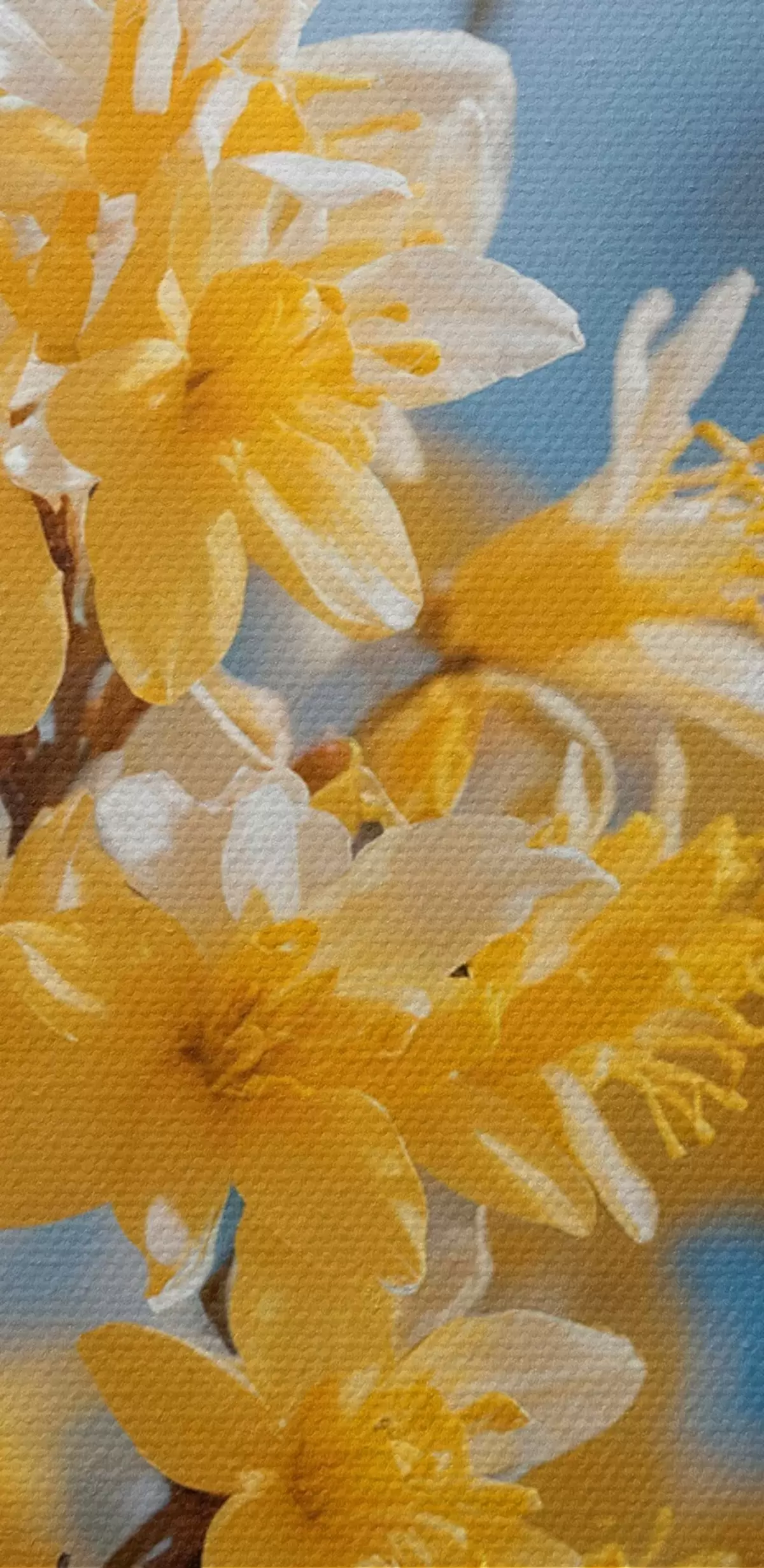 Drei Materialtypen stehen zur Verfügung: Economic Canvas - ein dichtes und haltbares Material für den Digitaldruck, identisch mit Malerleinwand, wasserfeste Oberfläche, realistische Wiedergabe von Details, mittelkörniges Material. Premium Canvas - die Textur ähnelt der einer Malerleinwand (verwobene kleine Fäden). Weiche, detaillierte Wiedergabe des Bildes auf einer matten Oberfläche. Eco-Premium - hochwertiges Gewebe aus 100% Baumwolle. Dank der natürlichen Baumwollfasern ist das Material langlebig und verschleißfest. Hervorragende Farbwiedergabe und Detailtreue.