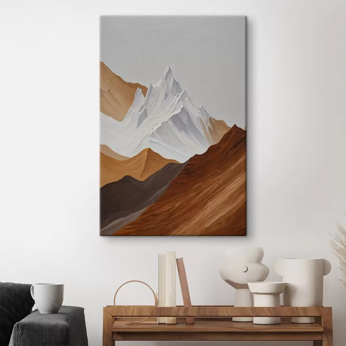 Gemälde Geometrische Berglandschaft in Braun- und Weißtönen Art. s44896