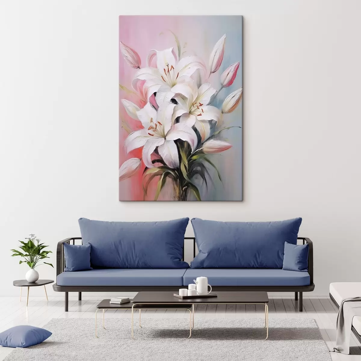 Drei Materialtypen stehen zur Verfügung: Economic Canvas - ein dichtes und haltbares Material für den Digitaldruck, identisch mit Malerleinwand, wasserfeste Oberfläche, realistische Wiedergabe von Details, mittelkörniges Material. Premium Canvas - die Textur ähnelt der einer Malerleinwand (verwobene kleine Fäden). Weiche, detaillierte Wiedergabe des Bildes auf einer matten Oberfläche. Eco-Premium - hochwertiges Gewebe aus 100% Baumwolle. Dank der natürlichen Baumwollfasern ist das Material langlebig und verschleißfest. Hervorragende Farbwiedergabe und Detailtreue.