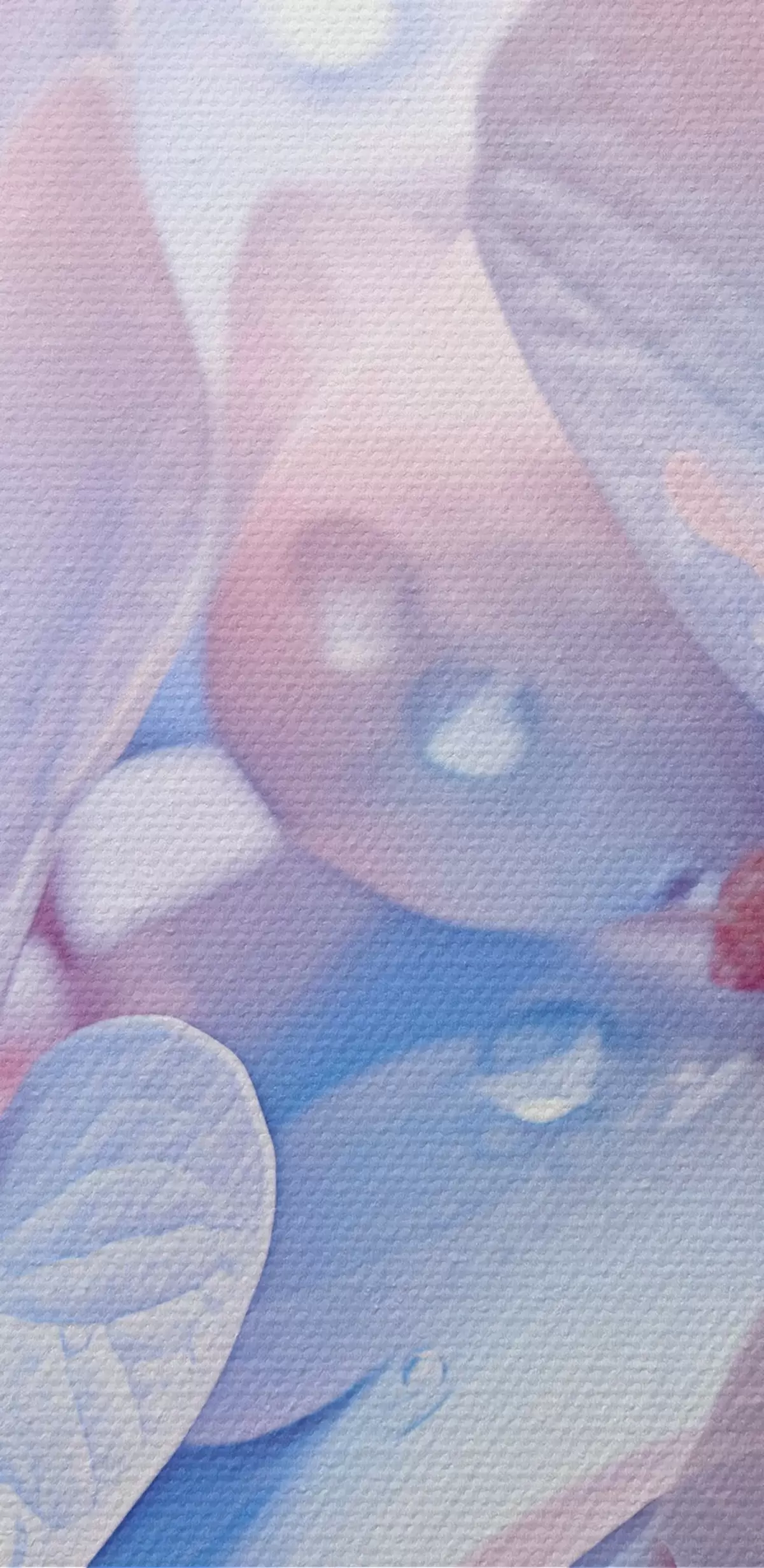 Gemälde Hortensienblüten mit Wassertropfen auf den zarten Blütenblättern, sanfte Pastellfarben, hellblaue und rosa Töne Art. s44929