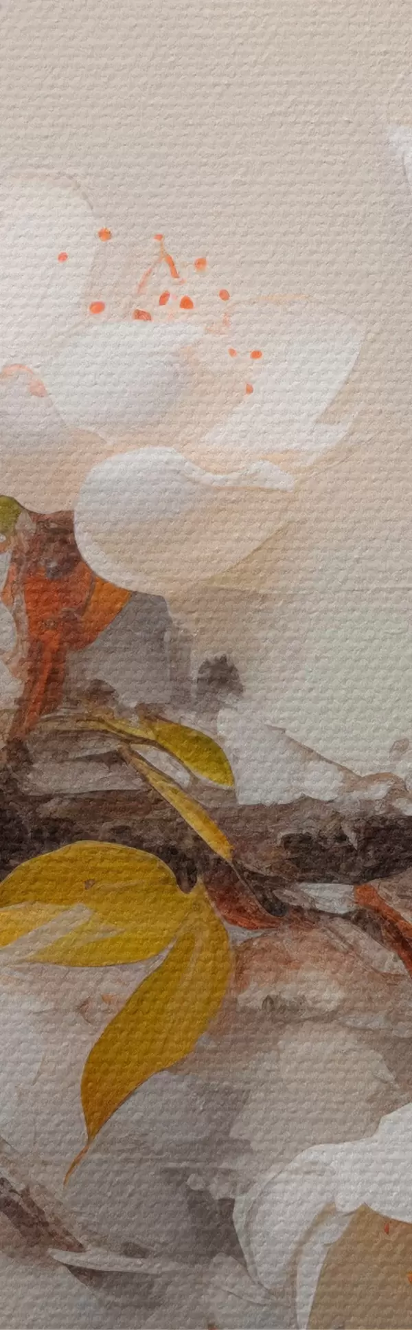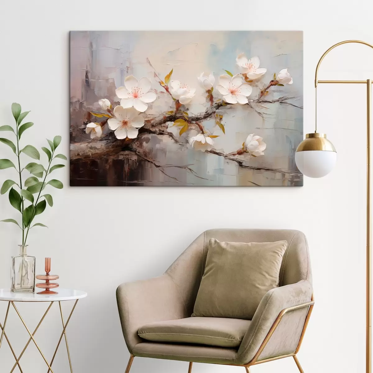 Gemälde Weiße Blumen mit rosa Akzenten auf einem abstrakten Hintergrund Art. s44935