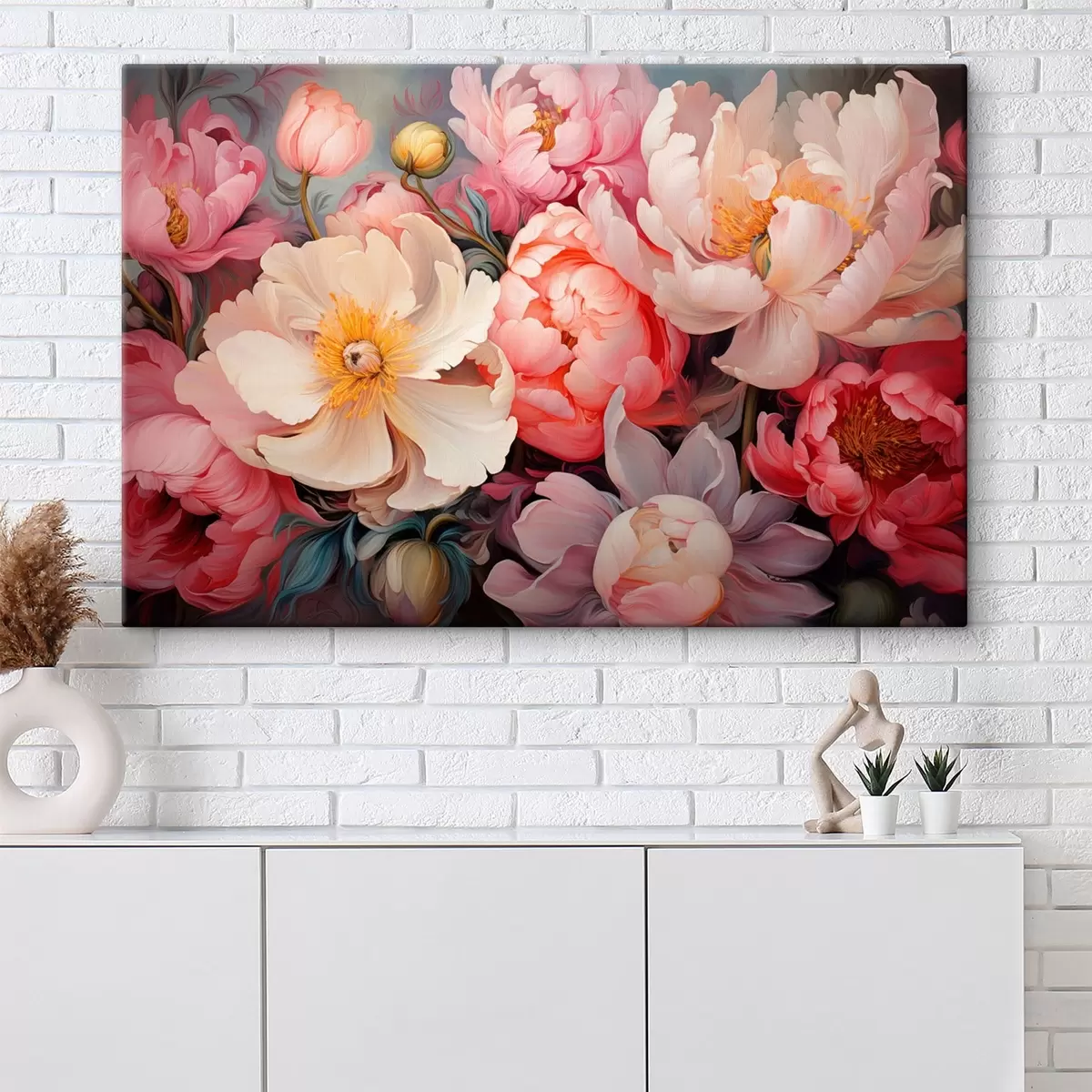 Gemälde Üppige Pfingstrosen in rosa Farbtönen im Stil eines Ölgemäldes Art. s44936