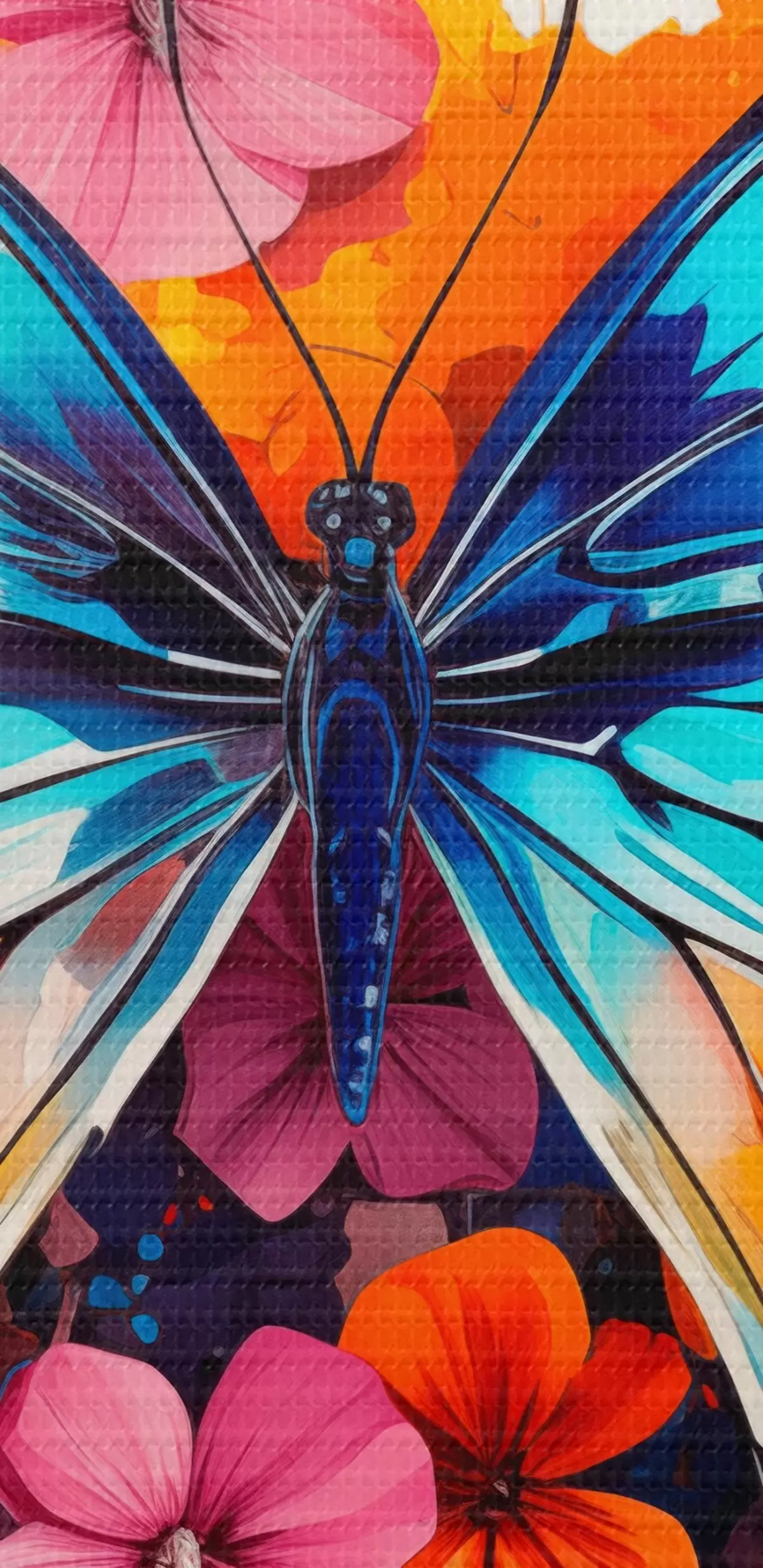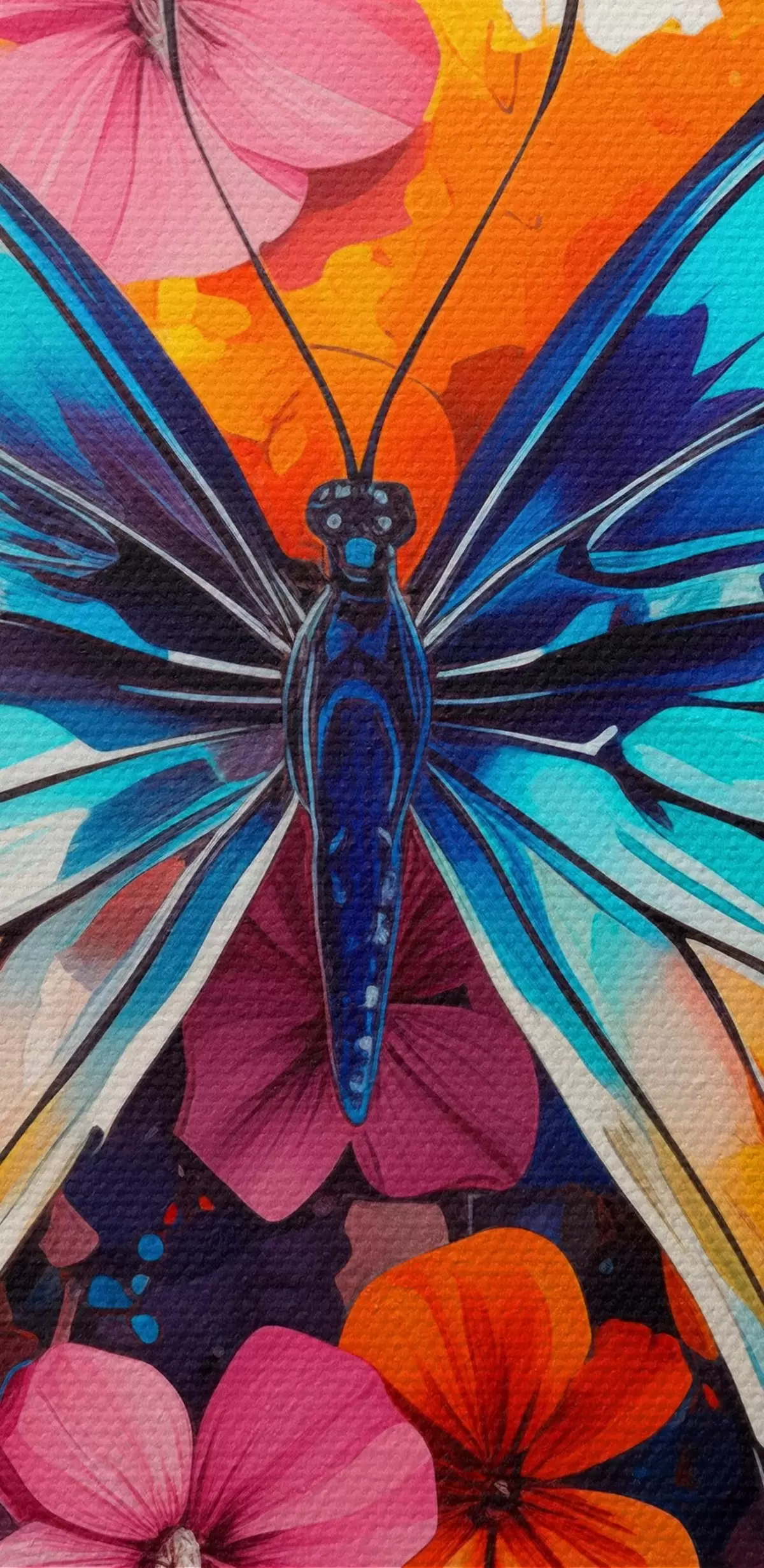 Fototapete Dynamische Komposition eines Schmetterlings und floralen Flecken im Kunststil s44943
