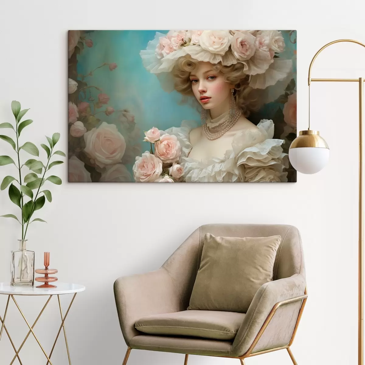 Gemälde Elegante Dame in einem Hut mit Blumen im künstlerischen Stil Art. s44944