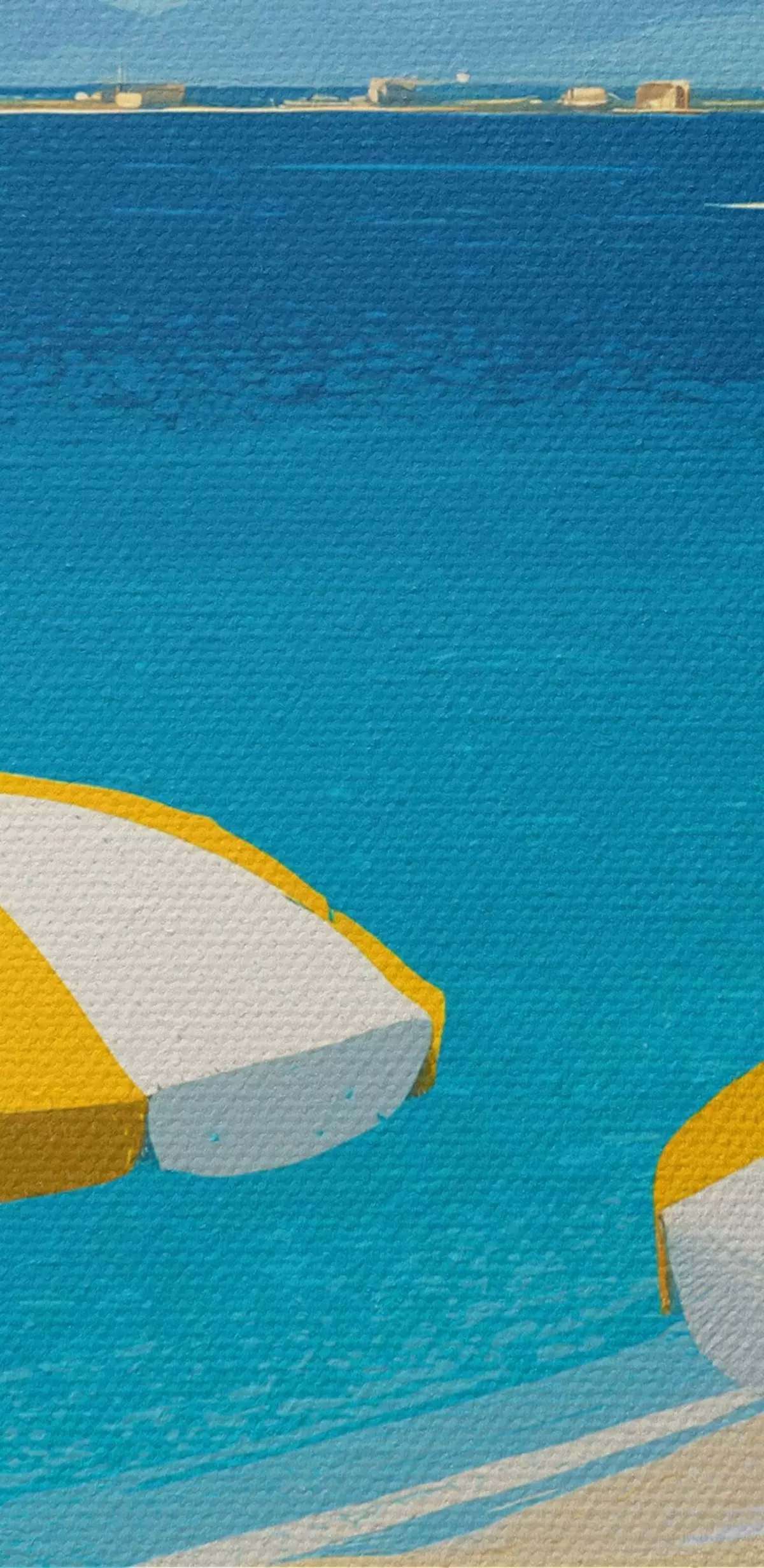 Gemälde Sommerstrand mit Sonnenschirmen und Bäumen Art. s44974