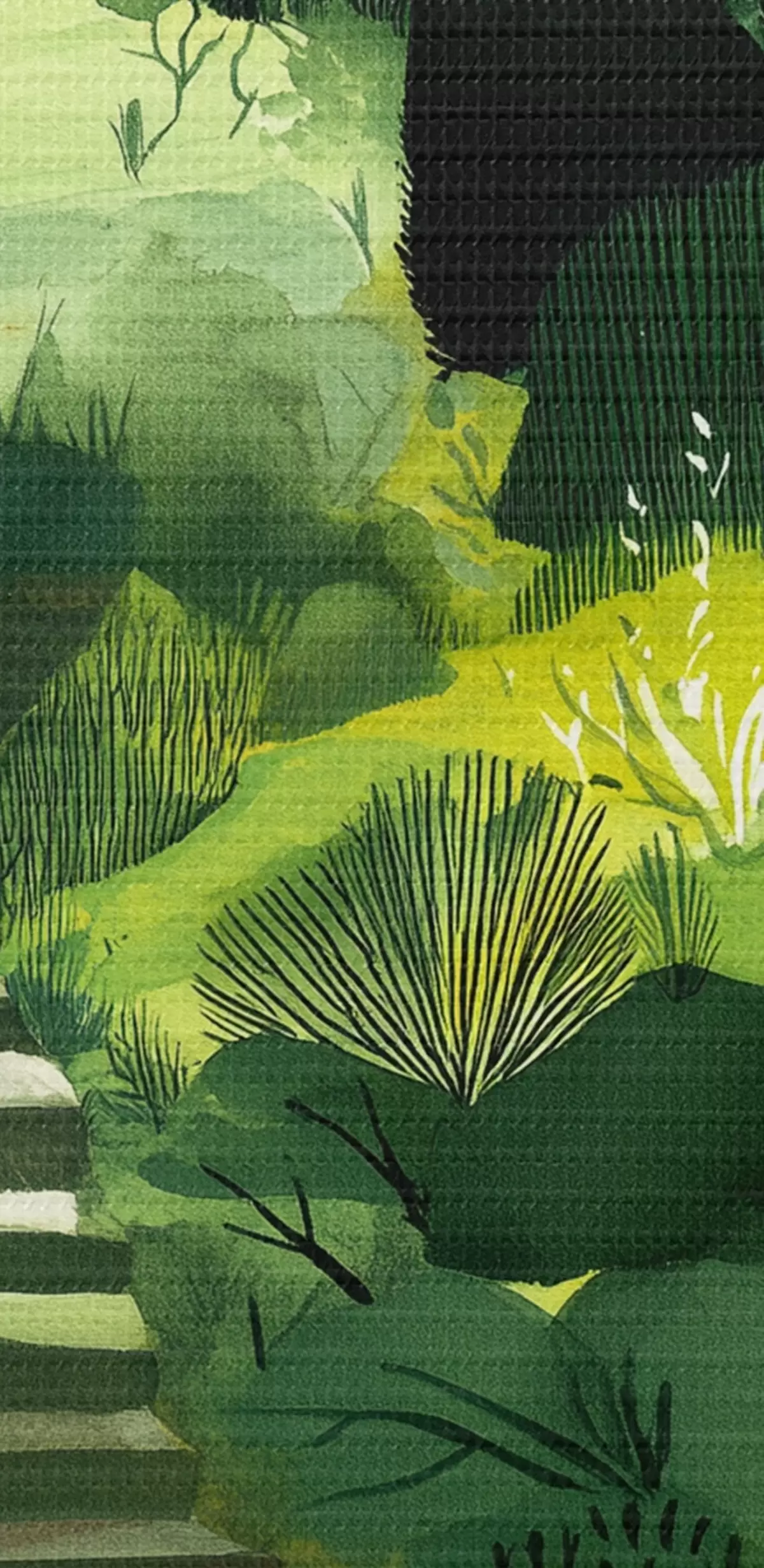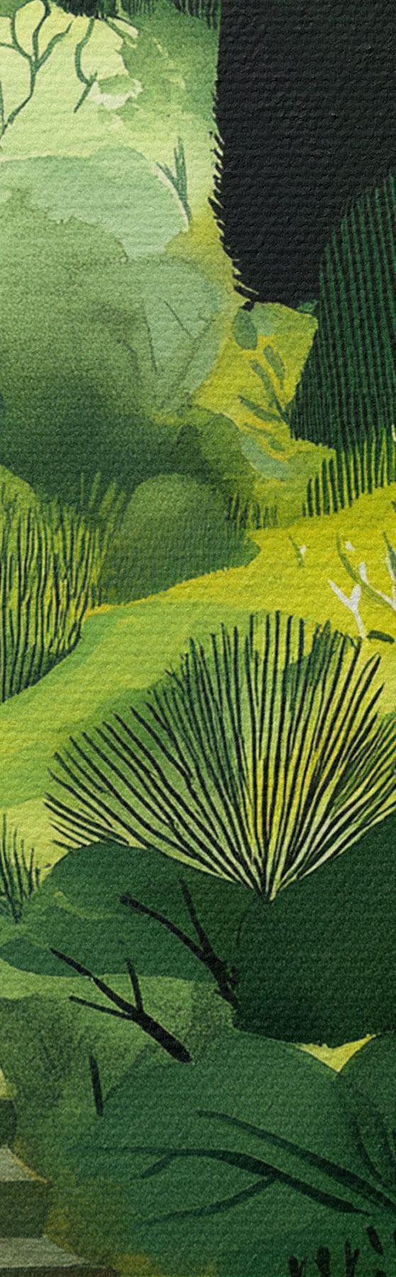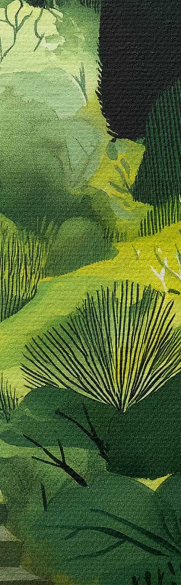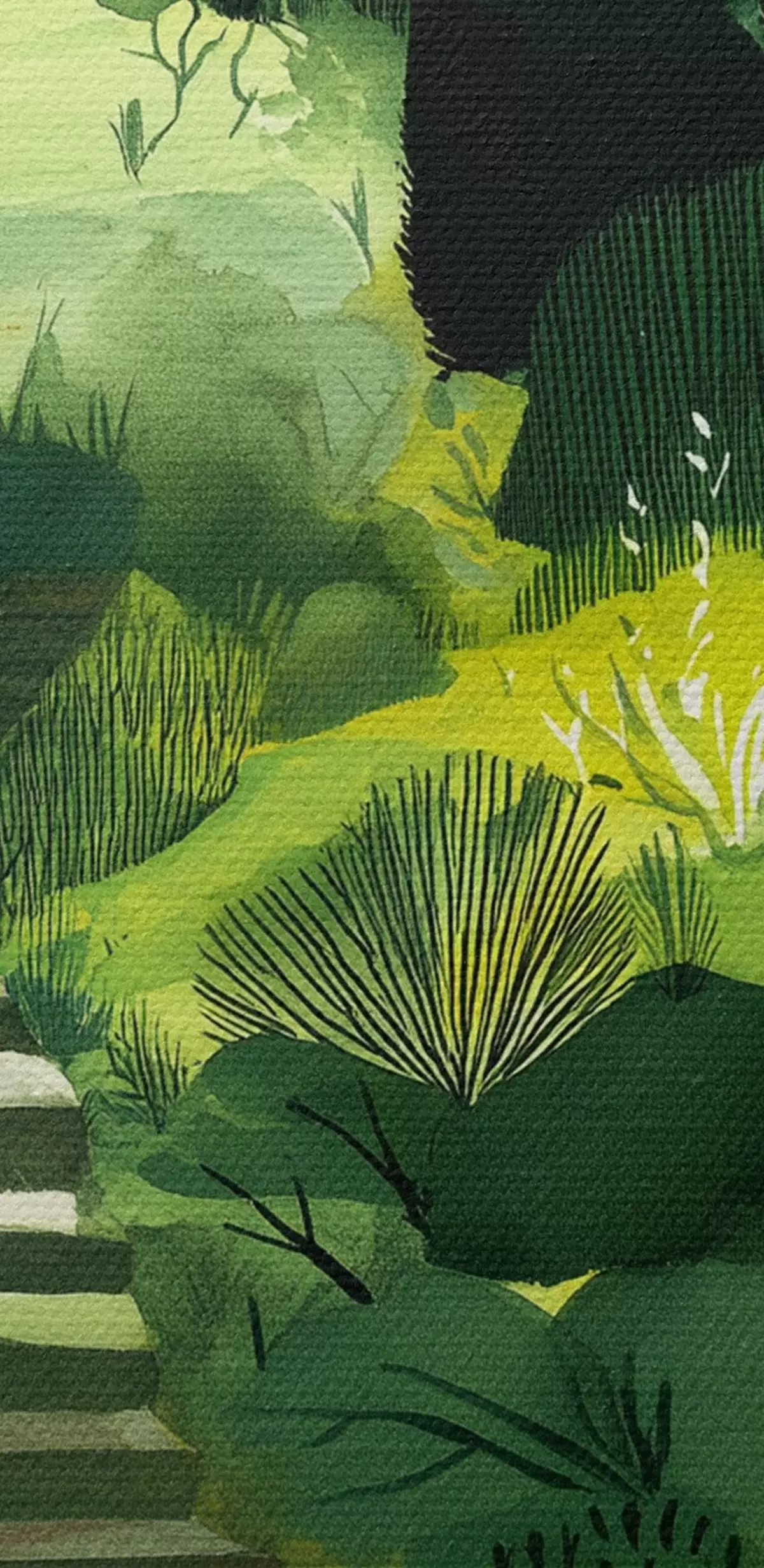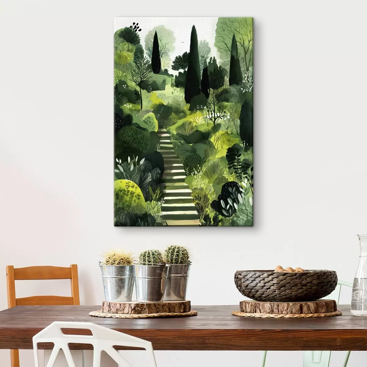Gemälde Grüne Hügel mit Bäumen und Sträuchern, Betontreppen, üppige Farben Art. s44980