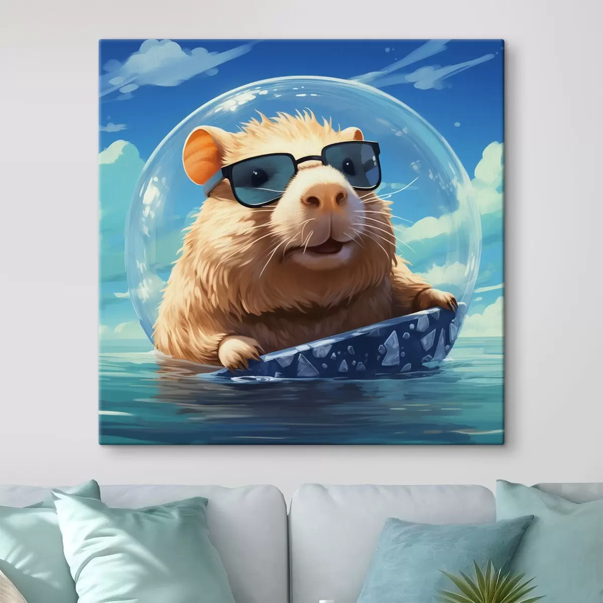 Gemälde Fröhliches Wasserschwein in einer durchsichtigen Blase auf dem Wasser Art. s45029