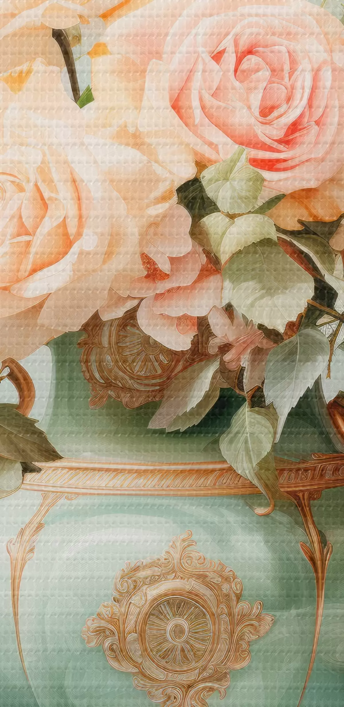 Fototapete Stilleben mit zarten Rosen in einem Teeservice s45045