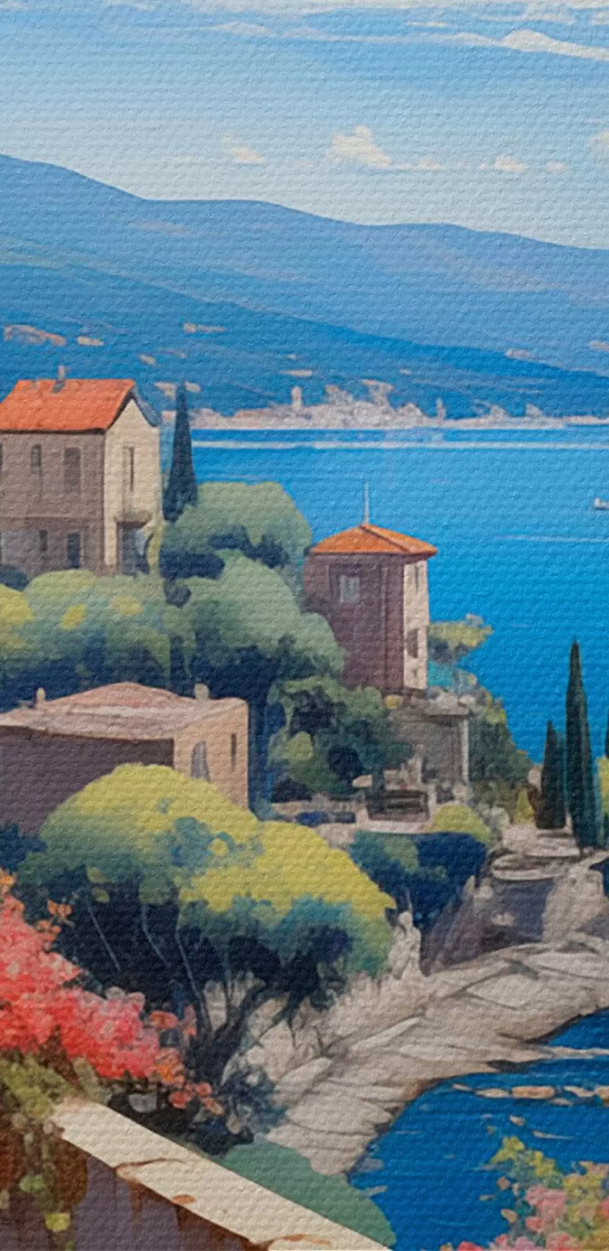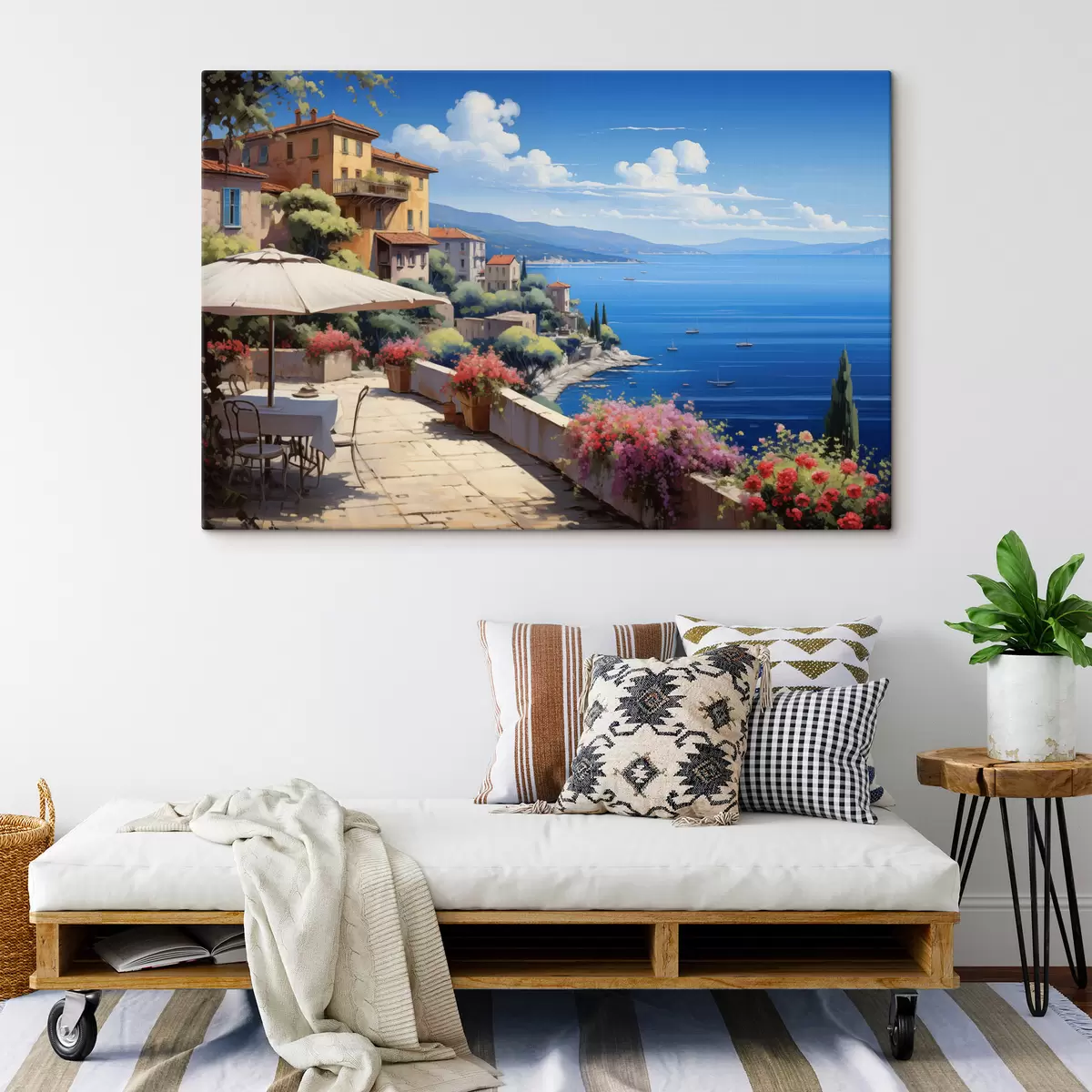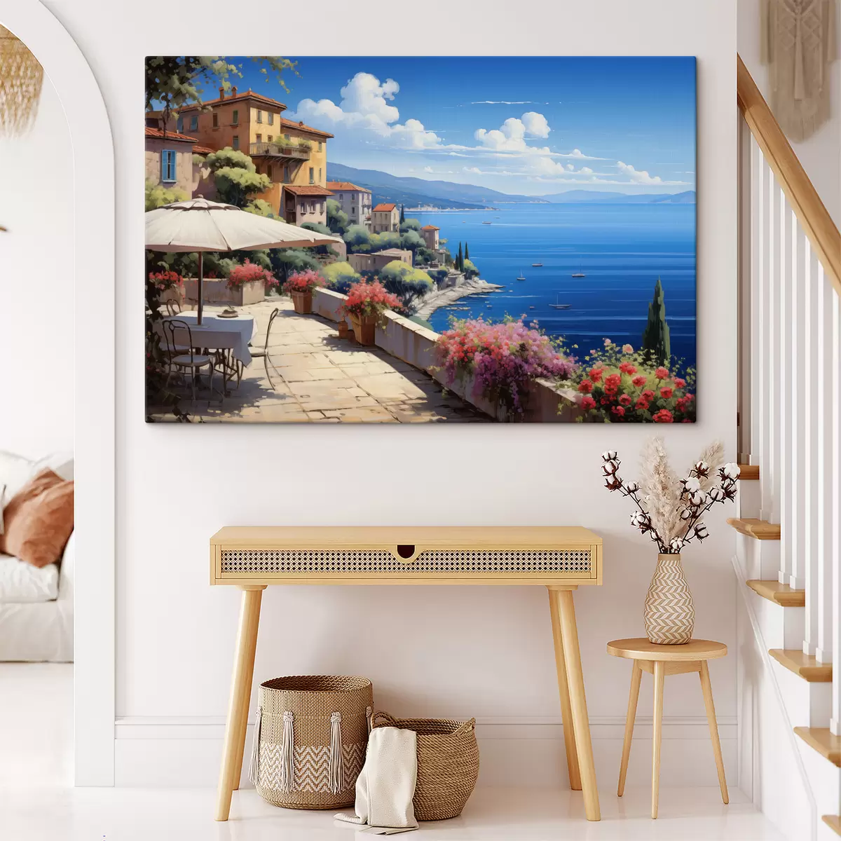 Gemälde Mediterrane Landschaft mit blühender Terrasse im künstlerischen Stil Art. s45053